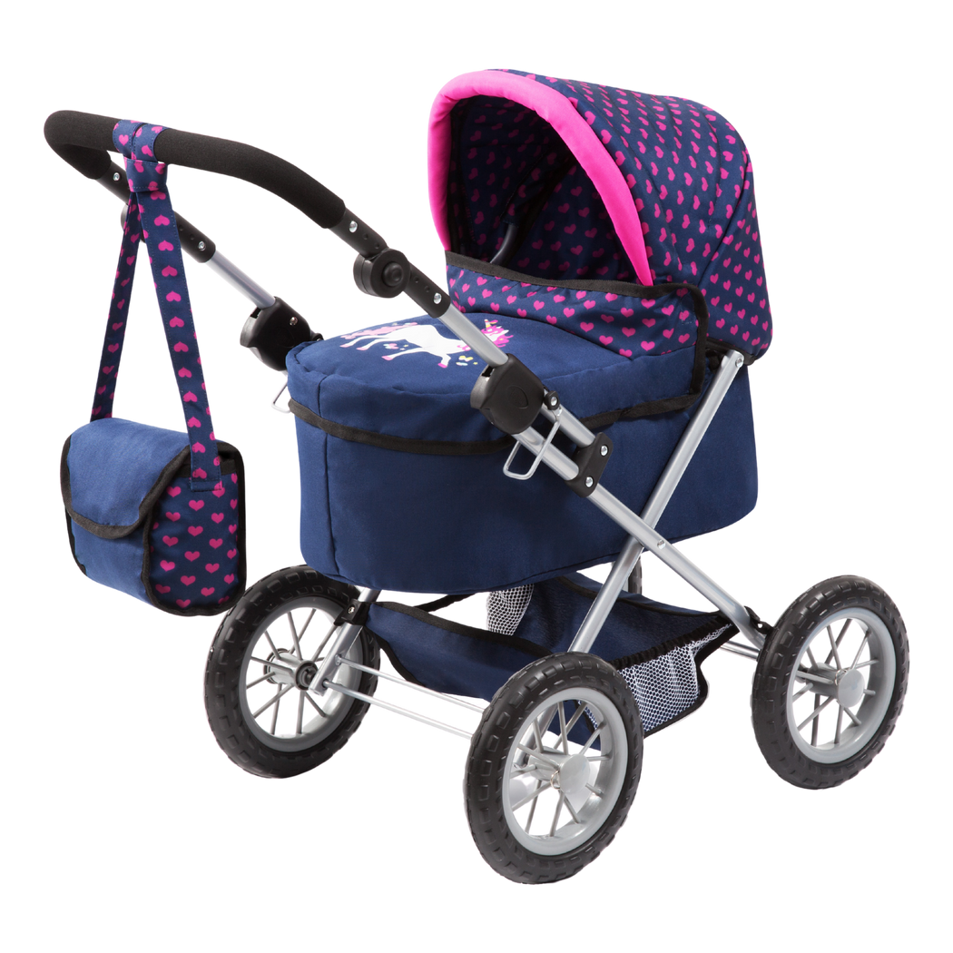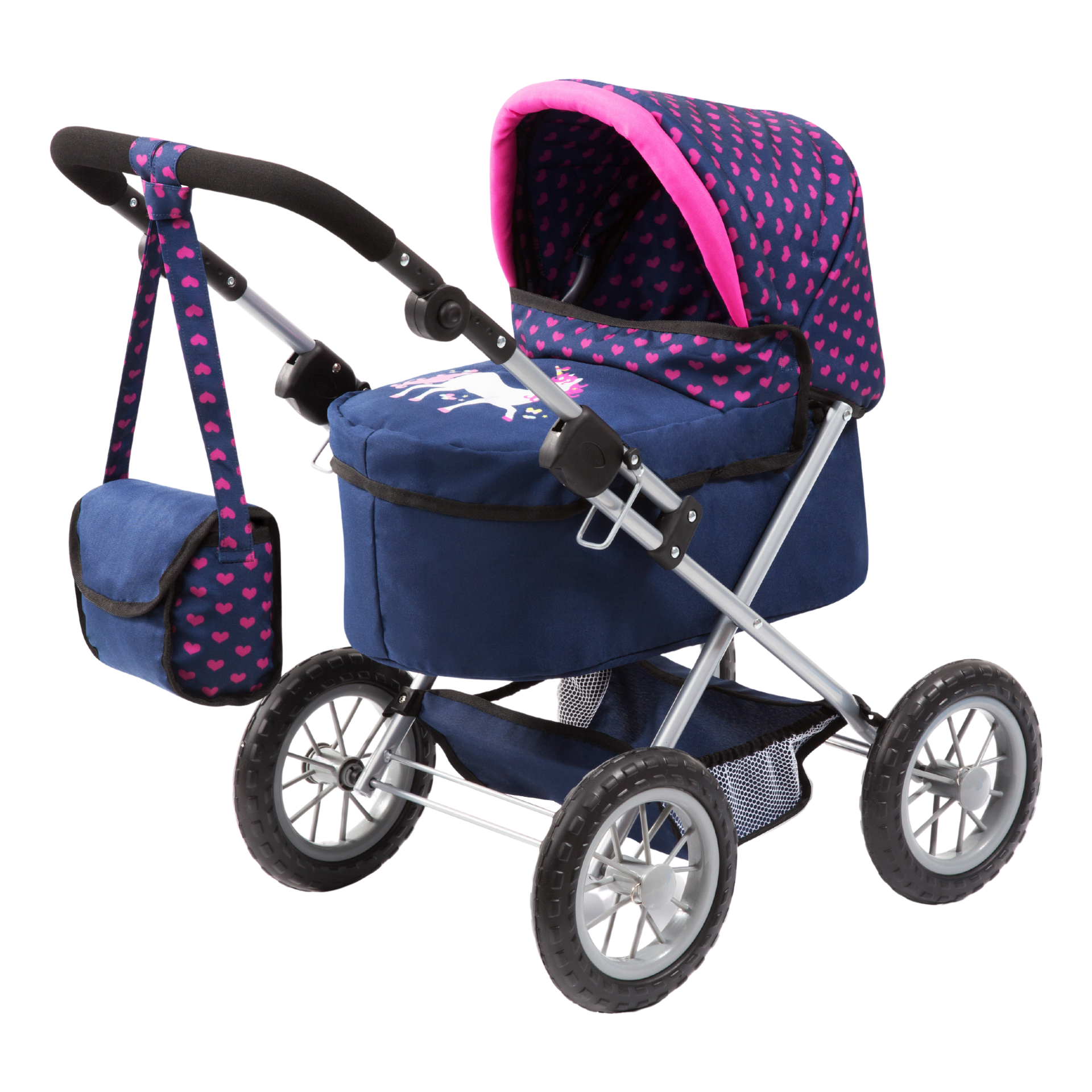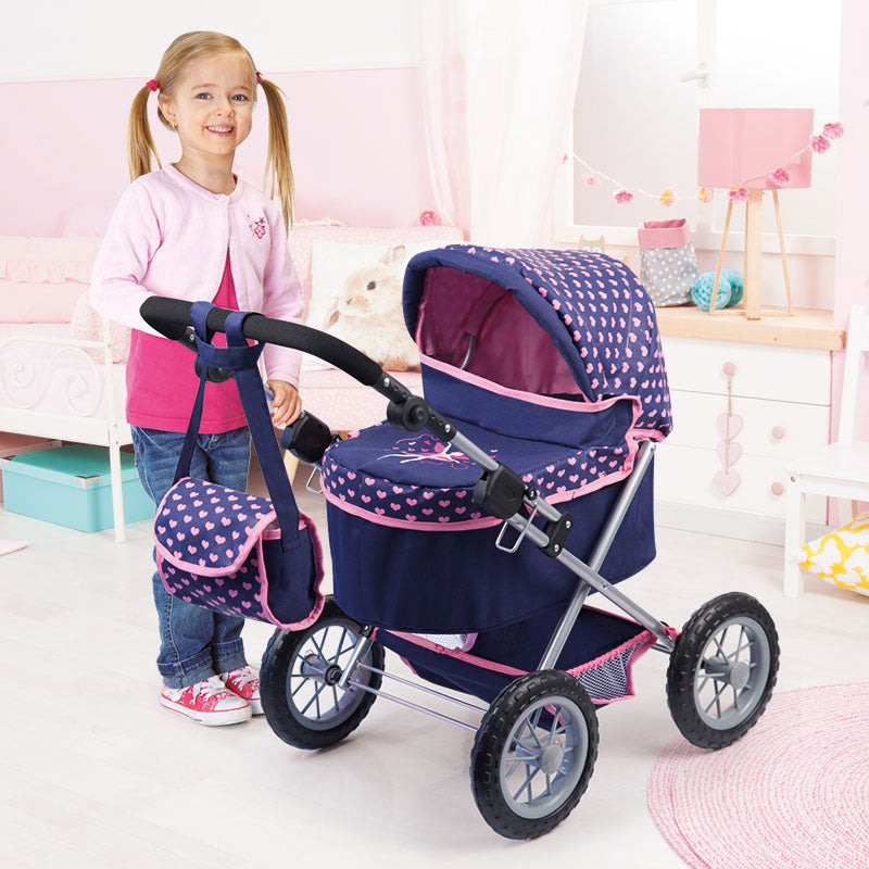 Bayer Cosy Pram Dark Blue With Pink Heart Hood