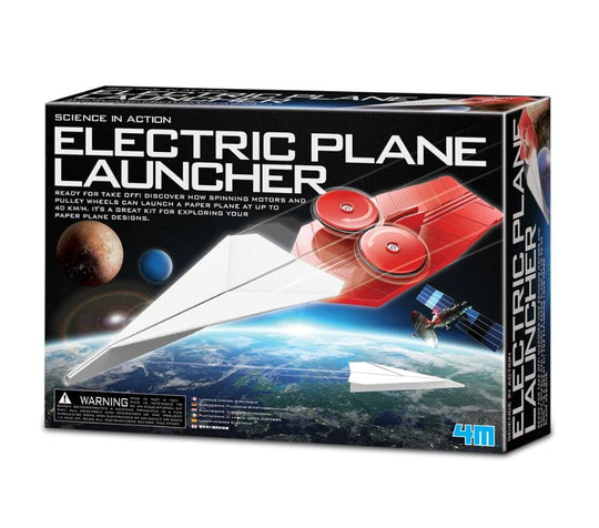 Ready for take off! Discover how spinning motors and pulley wheels can launch a paper plane at up to 40 km/h. Build your paper plane launcher, try out some different paper plane designs and then launch them! Work out which designs fly furthest, fastest or do the best acrobatics!The plane launcher uses two rotating wheels . A lot of energy is stored in the wheels when they are spinning. When you slip your paper plane in between, some of the energy is transferred to it and the plane is launched out at high speed.You can adjust the height of the legs on the plane launcher to launch the planes at different angles.An educational kit that demonstrates a scientific principle in a fun way. Assembly and operation of the toy should be supervised by an adult - they won’t be able to help themselves - who doesn’t love playing with paper planes, no matter what the age!Produced by award-winning toy manufacturer 4M, leaders in STEAM toys for kids.Educational but super fun nature of the toy makes it a winner with kids (and parents) - they don’t even realise they are learning science and engineering skills while they are building and playing with this toy.