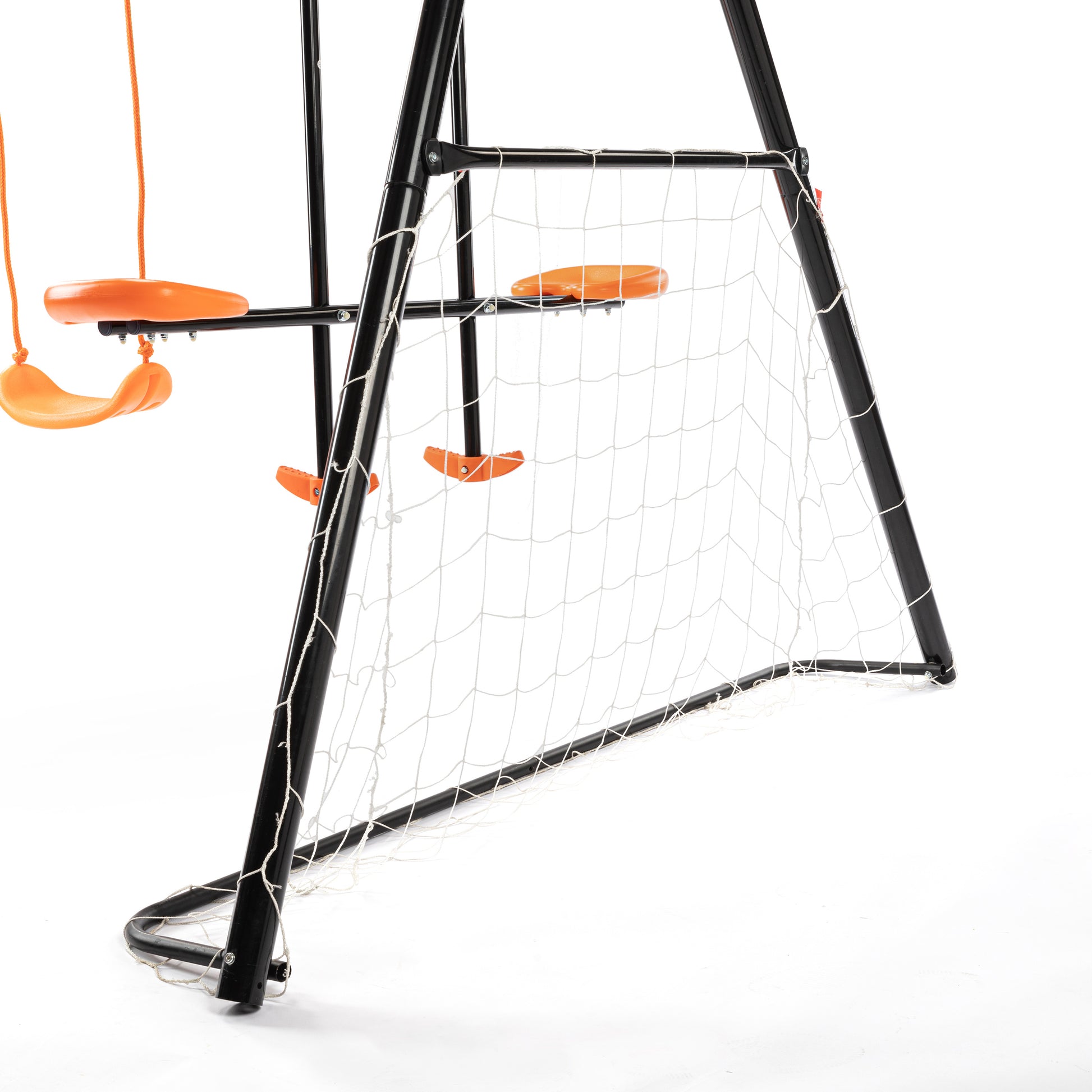 Includes: Slide, Ball ring, Trapeze, Swings x2, Two Child Glider, Target Goal