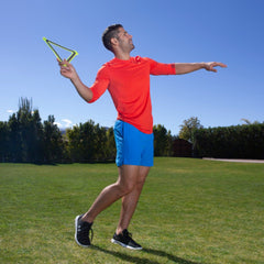 HIGH PERFORMANCE BOOMERANG / ORBITER. SOFT EDGES AND TRIANGULAR SHAPE PROVIDES SECURE GRIP AND MAKES IT EAST TO CATCH High performance boomerang. Flies 27m & comes back to you. Soft edges & triangular shape provides a secure throwing grip and makes it easy to catch. 3 different colours.