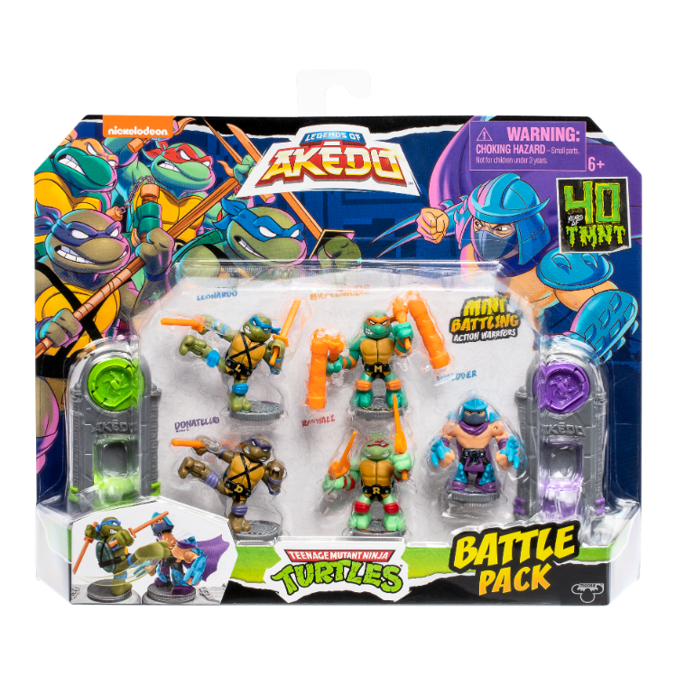 With 5 mini TMNT Battling figures & 2 silver Battle Controllers the Legends of Akedo Teenage Mutant Ninja Turtles Battle Pack provides players with the ULTIMATE battle and everything needed to perfect the ULTIMATE SPLIT STRIKE!
