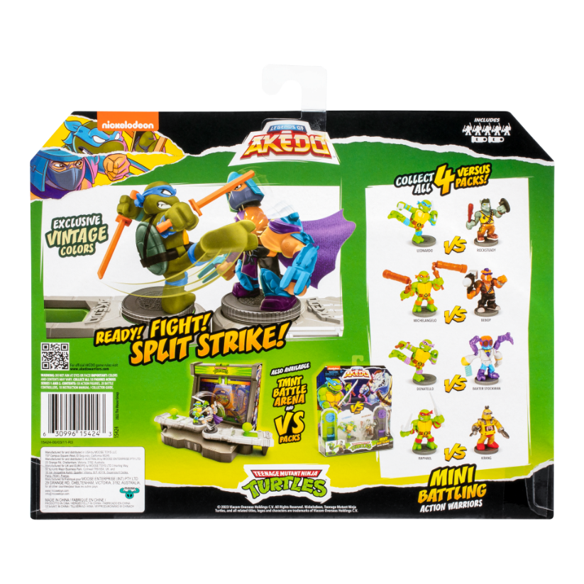 Attention all fans of the Teenage Mutant Ninja Turtles! The ULTIMATE battling experience meets Teenage Mutant Ninja Turtles! Teenage Mutant Ninja Turtles have joined Akedo to take the battling experience to ANOTHER LEVEL! Get ready to "Split Strike" villains with weapons and TMNT hero battling figures!