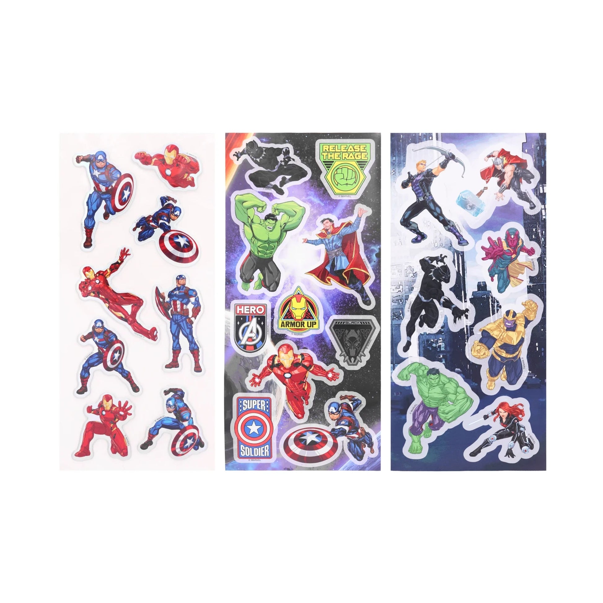 Contains 3 fun Avengers sticker sheets: