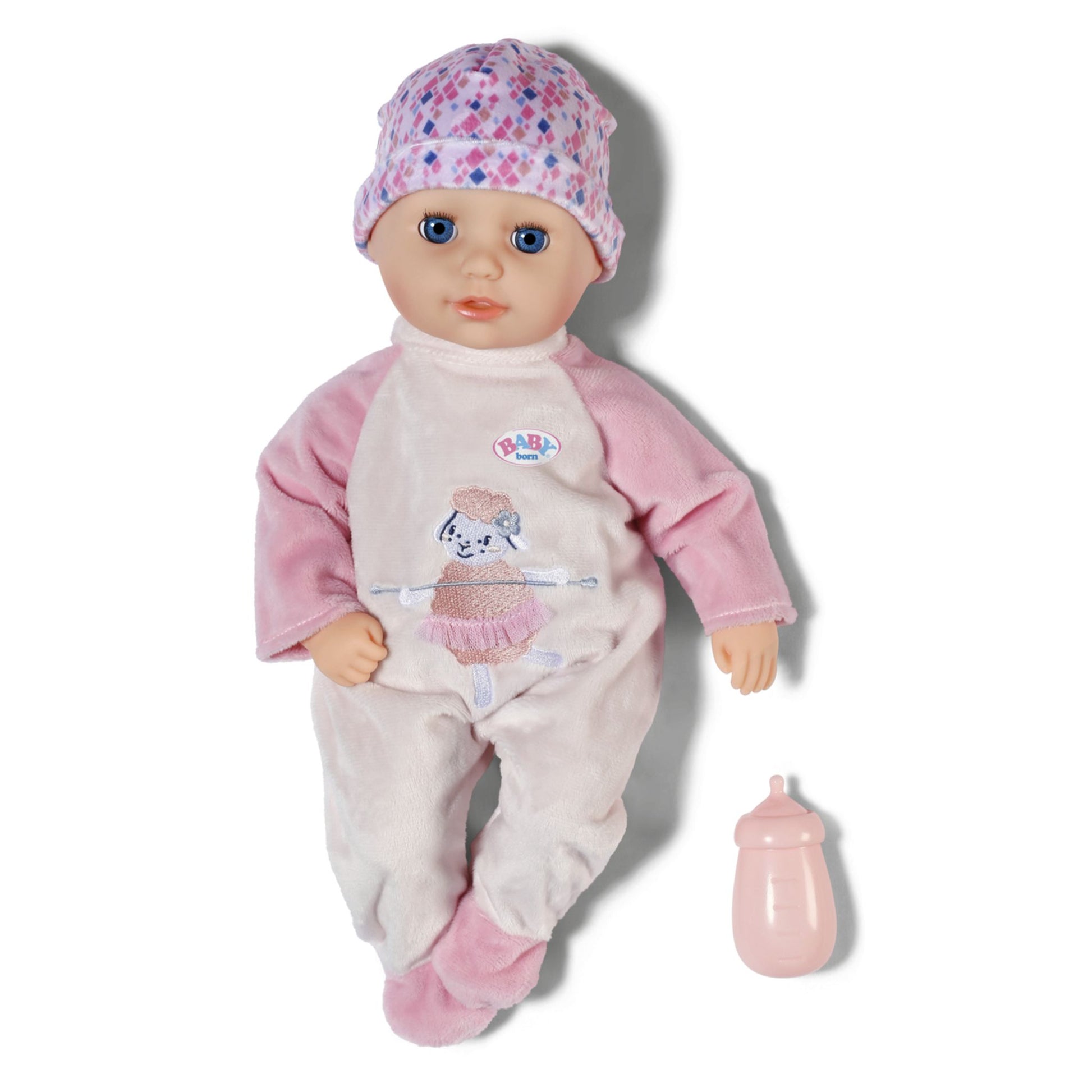 - Includes outfit – The doll set includes a pink romper, plus a matching doll's hat and bottle