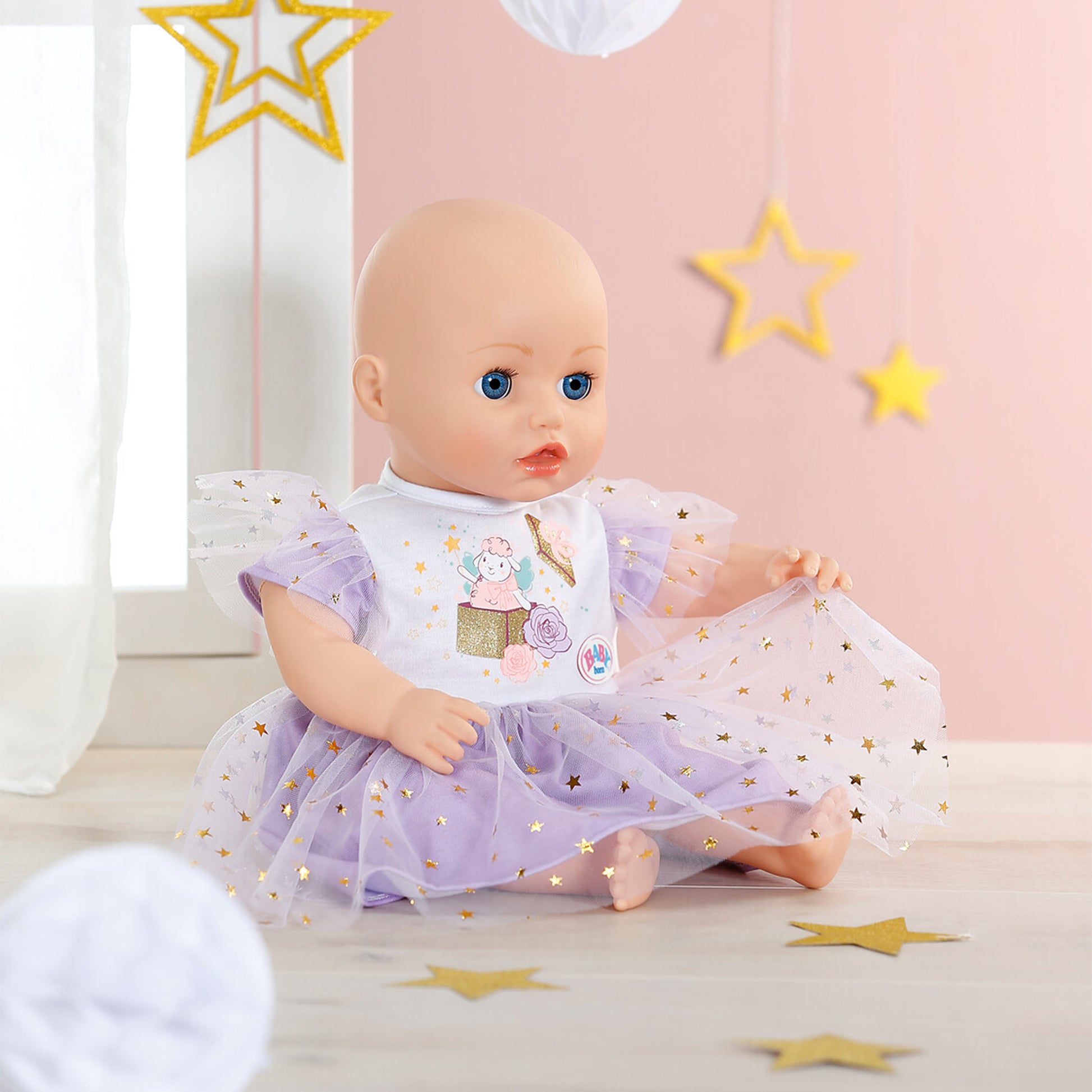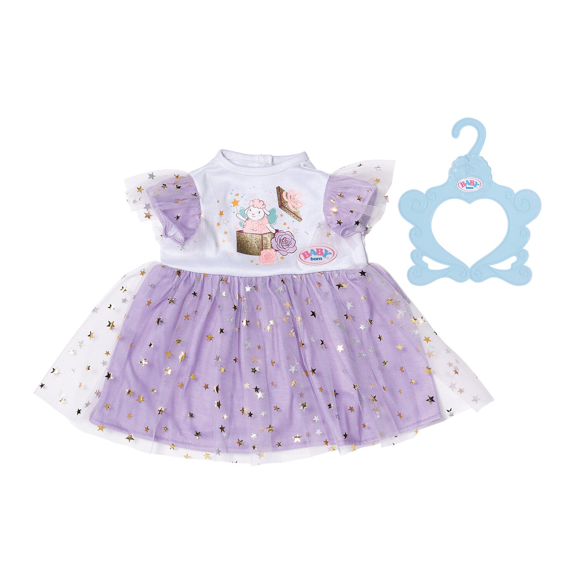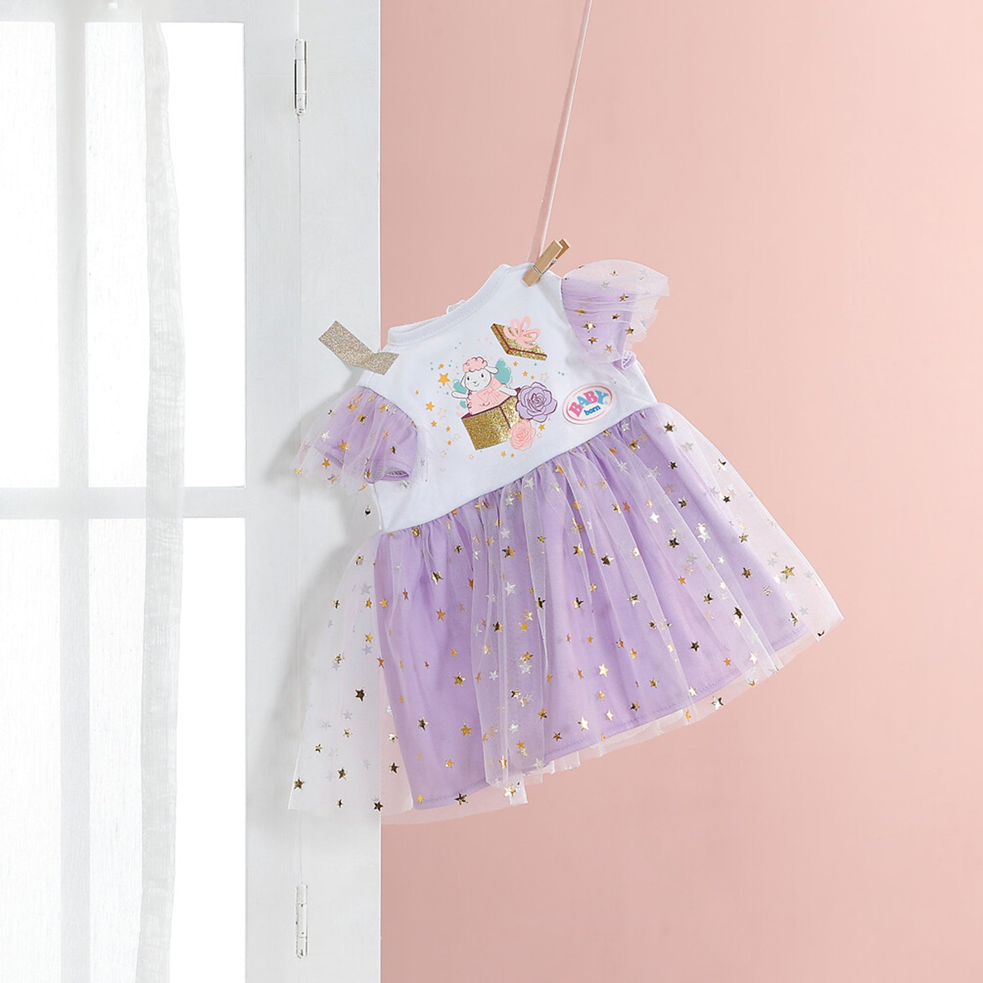 Baby Born Lilac purple tutu dress with delicate tulle and golden stars is a great accessory. The set not only promotes imagination and creativity, but also fine motor skills and social interaction. Doll not included.