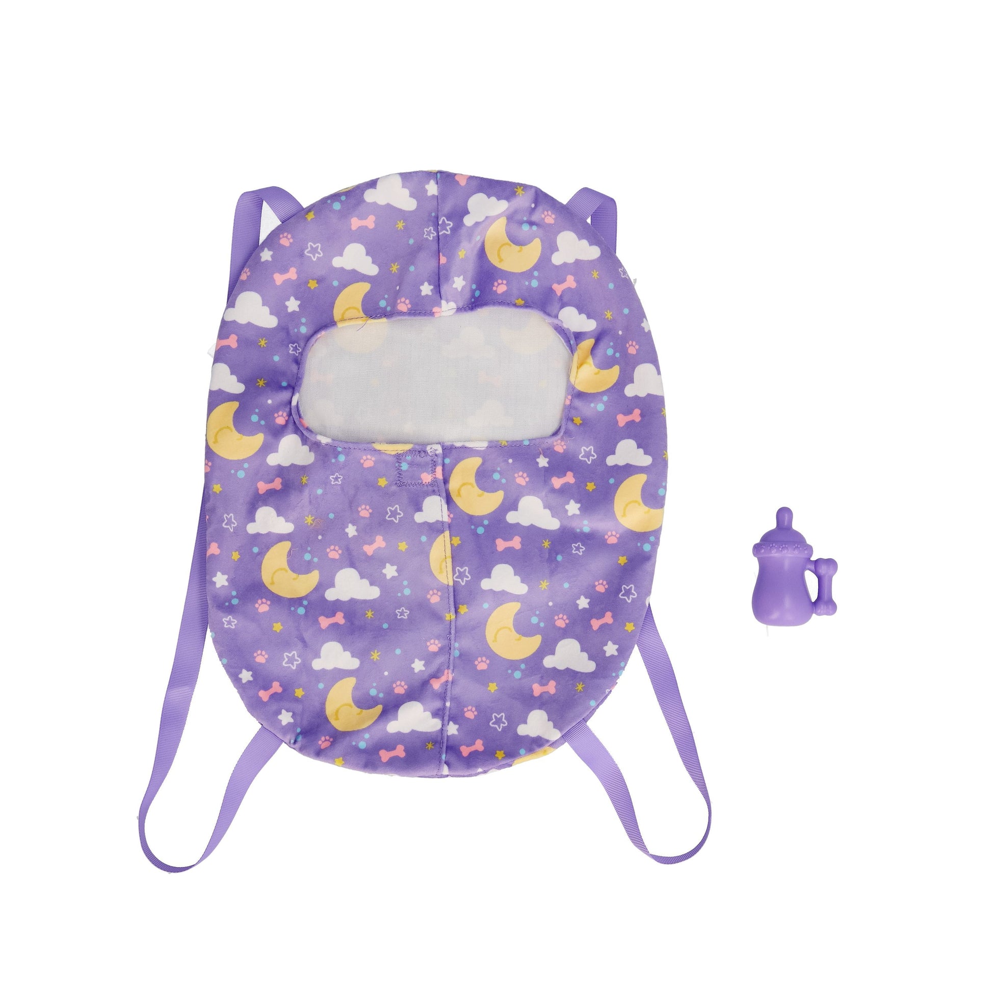 It includes 3 accessories: the dummy, a feeding bottle and a swaddle bag to take him everywhere with you.