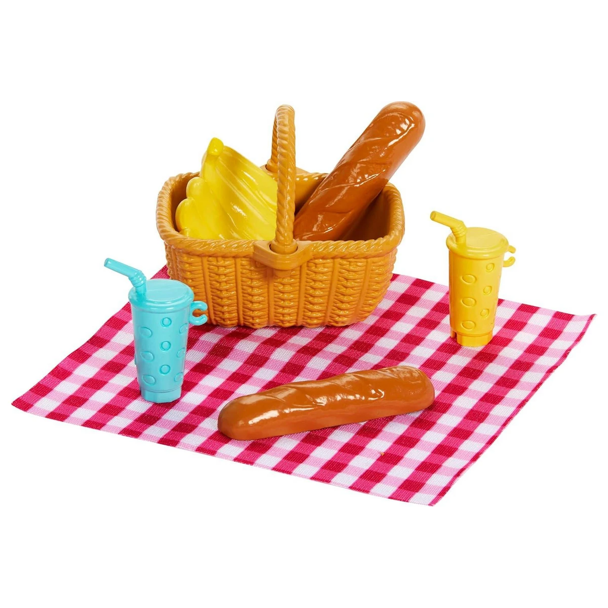 Barbie ‘Malibu’ and little sister Chelsea are ready for a fun picnic adventure. This adorable set includes 9 themed accessories like a picnic basket, blanket, baguettes, banana bunch and two drinks the dolls can hold.
