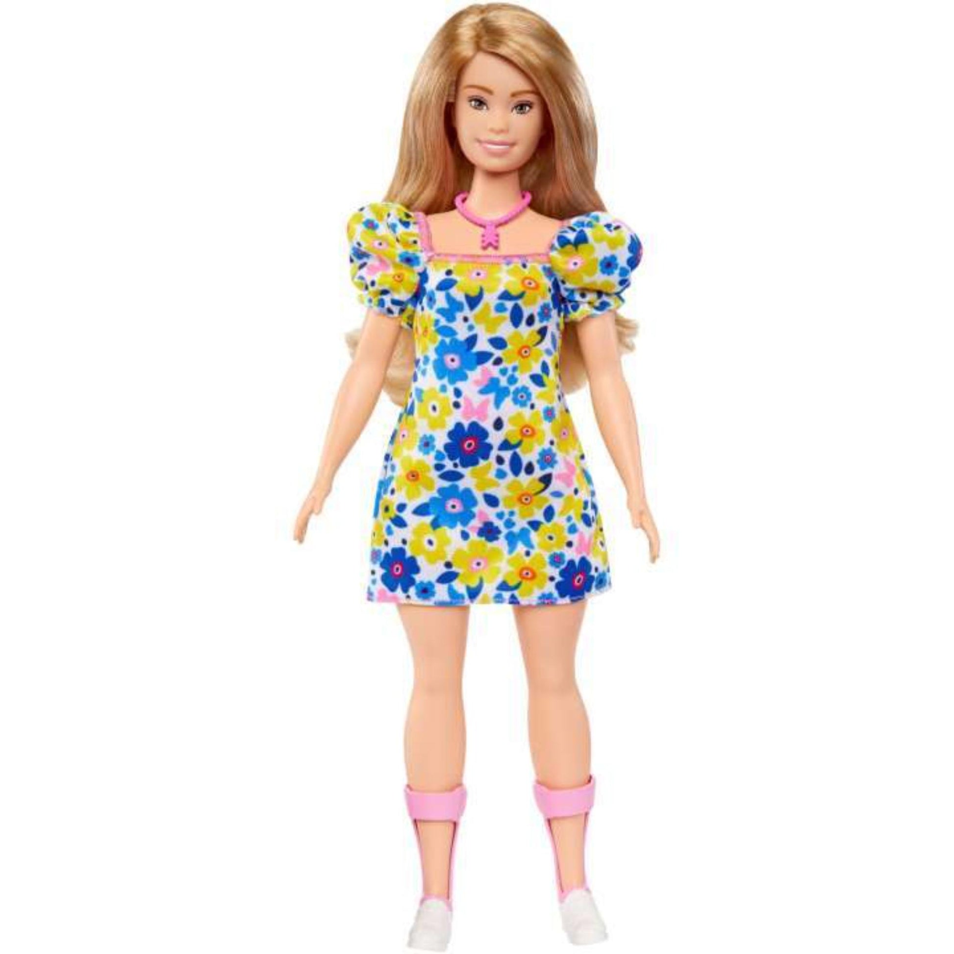 Barbie® doll’s pink ankle foot orthoses (AFOs) match her outfit perfectly and support her as she walks, while her white sneakers have a zipper detail so kids can easily slip them on and off! She has blond hair and rocks a floral dress with puff sleeves! With such a versatile and stylish look, this Barbie® doll is ready for any adventure that kids dream up! Includes 1 doll, 1 outfit, 1 pair of shoes and 1 accessory.