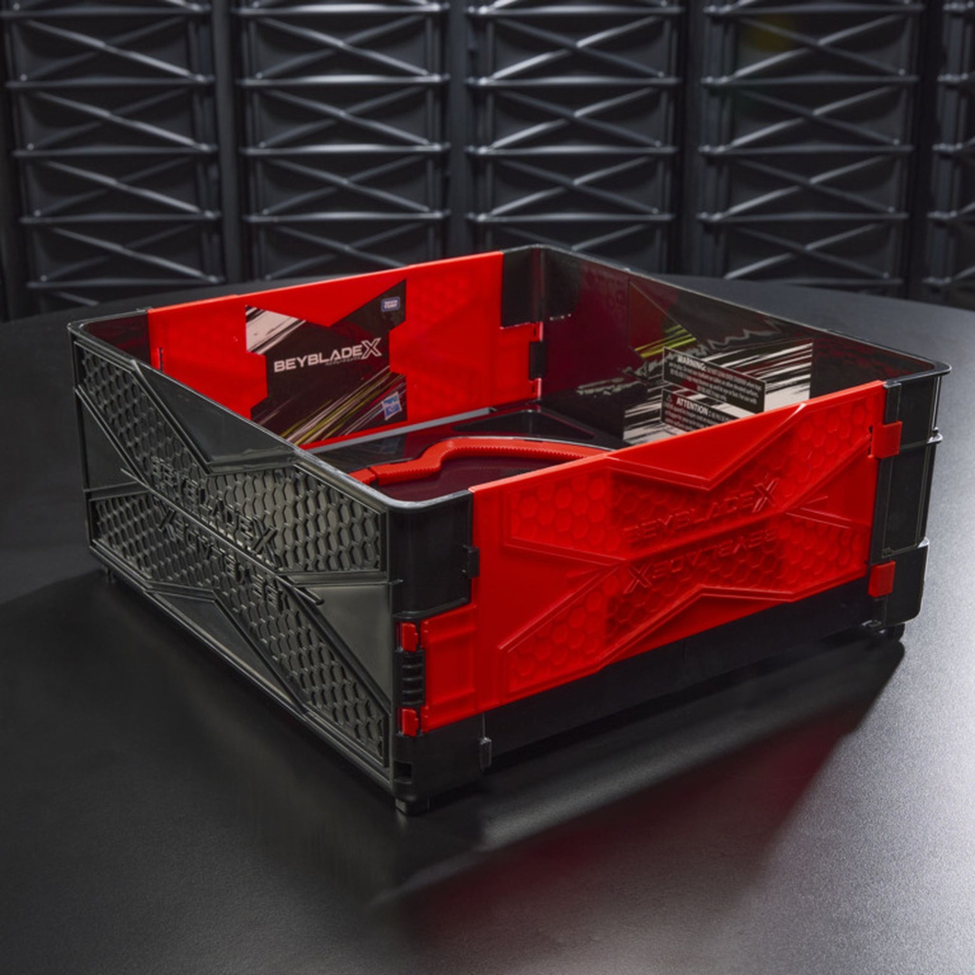 WARNING: Only use BEYBLADE X tops with a BEYBLADE X Beystadium. DO NOT LEAN OVER STADIUM when tops are in play. Do not use stadium on tables or other elevated surfaces. Tops may bounce up and hit eye and face.