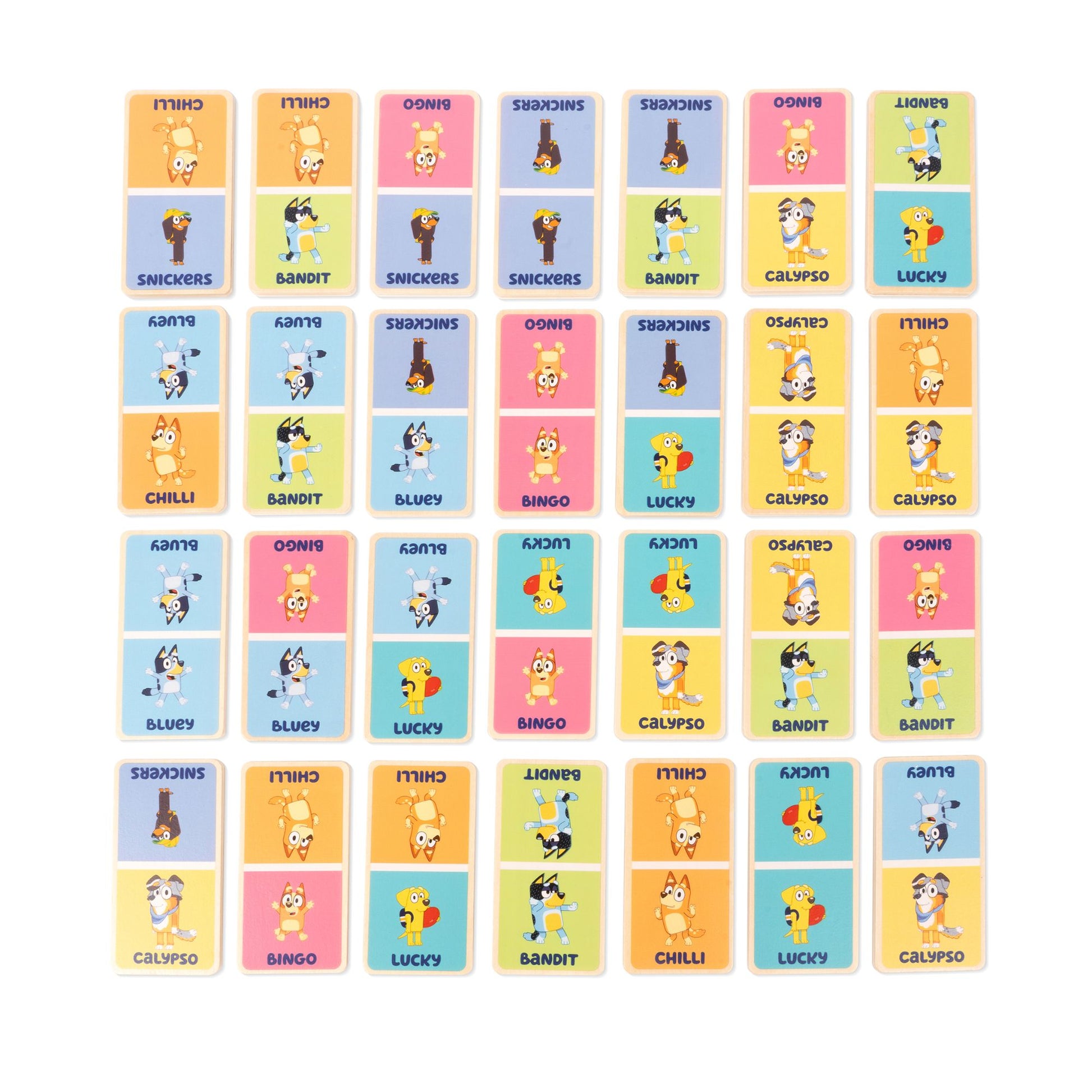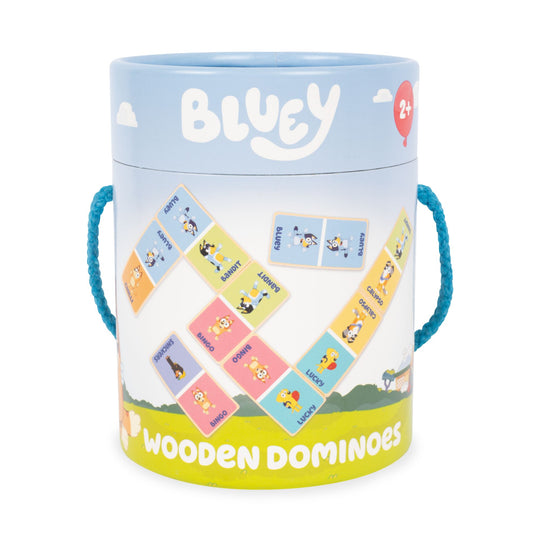 The Bluey Wooden Dominoes are great for developing hand-eye coordination, dexterity and matching skills. Each domino is beautifully illustrated with favourite Bluey characters and can be packed away in handy cardboard tub with handles for on-the-go play. The Bluey Dominoes are made from responsibly sourced materials, the wooden products are certified by the FSC. Suitable for ages 3+.