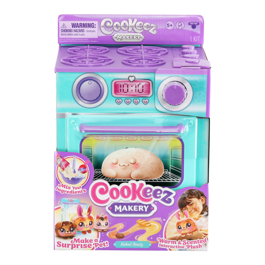 Cookeez Makery will amaze you and your child when they bake a surprise plush best friend! As they open the oven door they will discover their own warm and scented interactive plush friend in the shape of a yummy smelling baked treat!