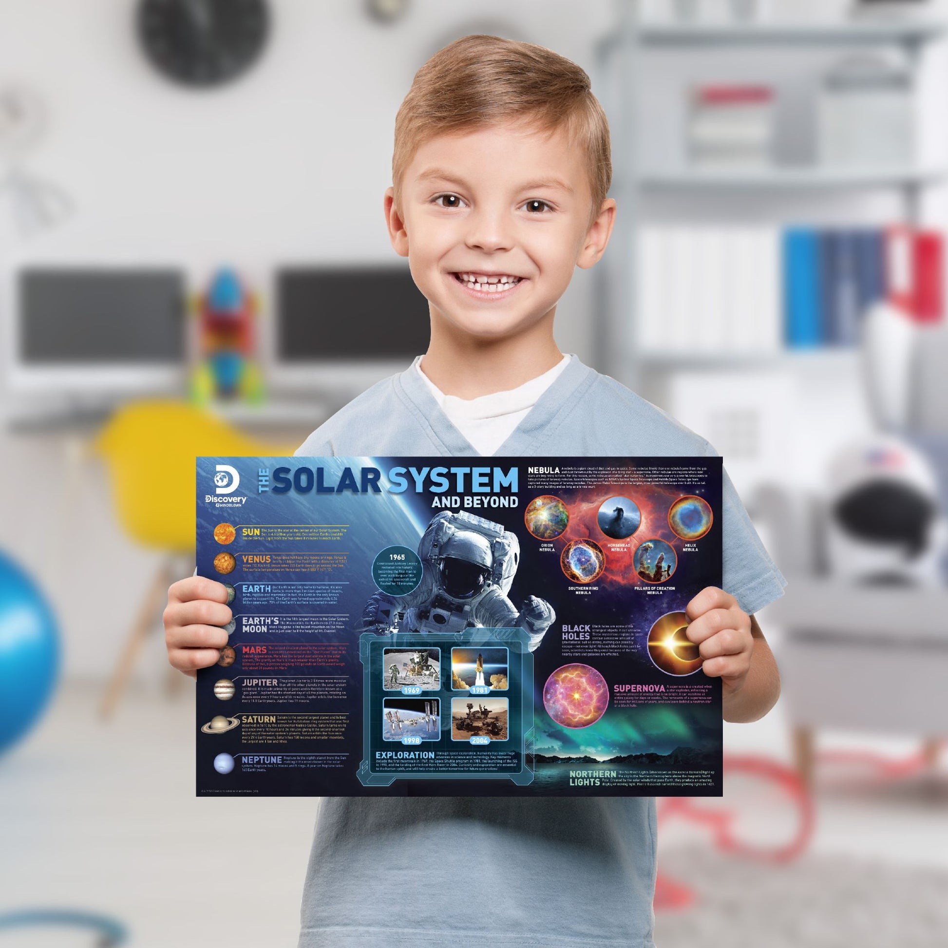 Includes 24 vivid space-themed images on 3 slide wheels and bonus educational space facts poster