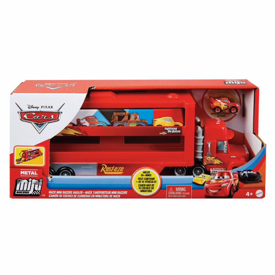 Take your favorite Mini racers from Disney and Pixar Cars on the road to victory in their themed haulers! Choose from Lightning McQueens transporter, Mack and Jackson Storms infamous carrier, Gale Beaufort.