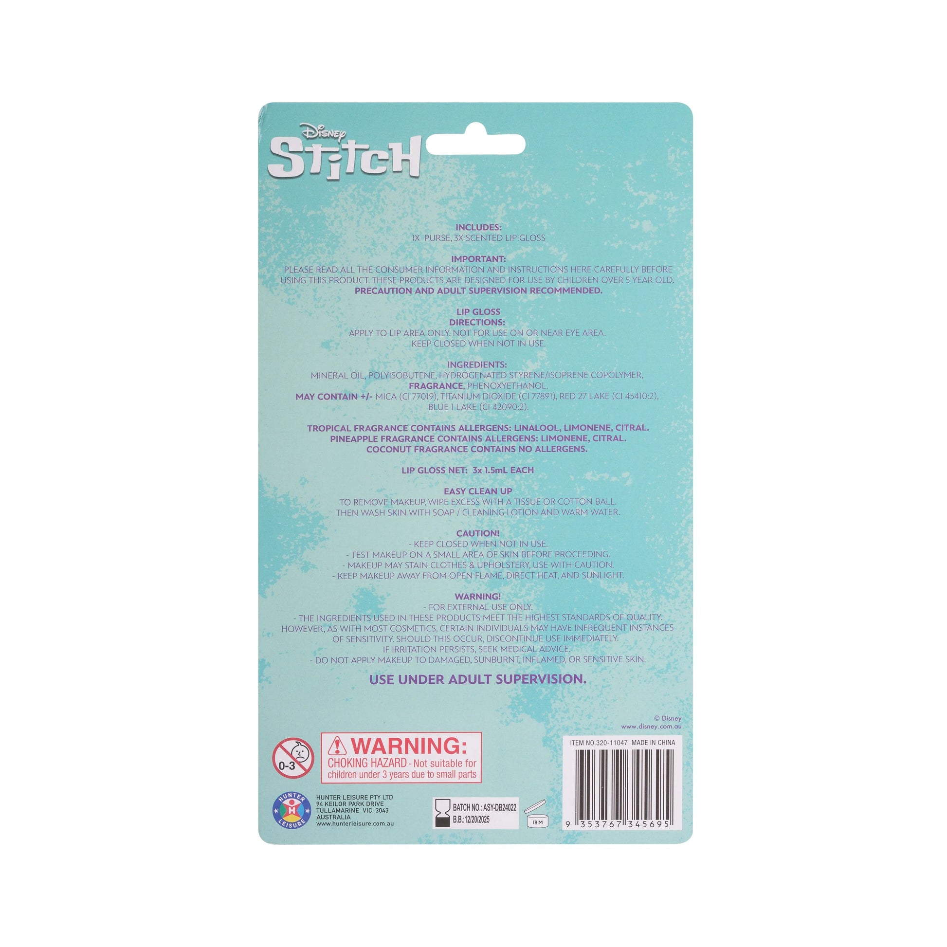 The Disney Stitch Lip Gloss and Purse Set is a delightful accessory for young fans aged 5 and above.