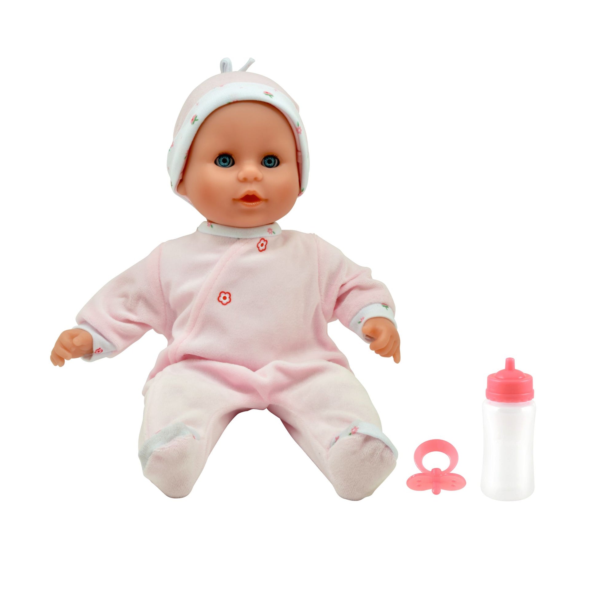 Little Poppet from Dolls World is a classic baby doll who is ready for lots of cuddles! This doll has a soft bean body and sleeping eyes and comes with a bottle and dummy.
