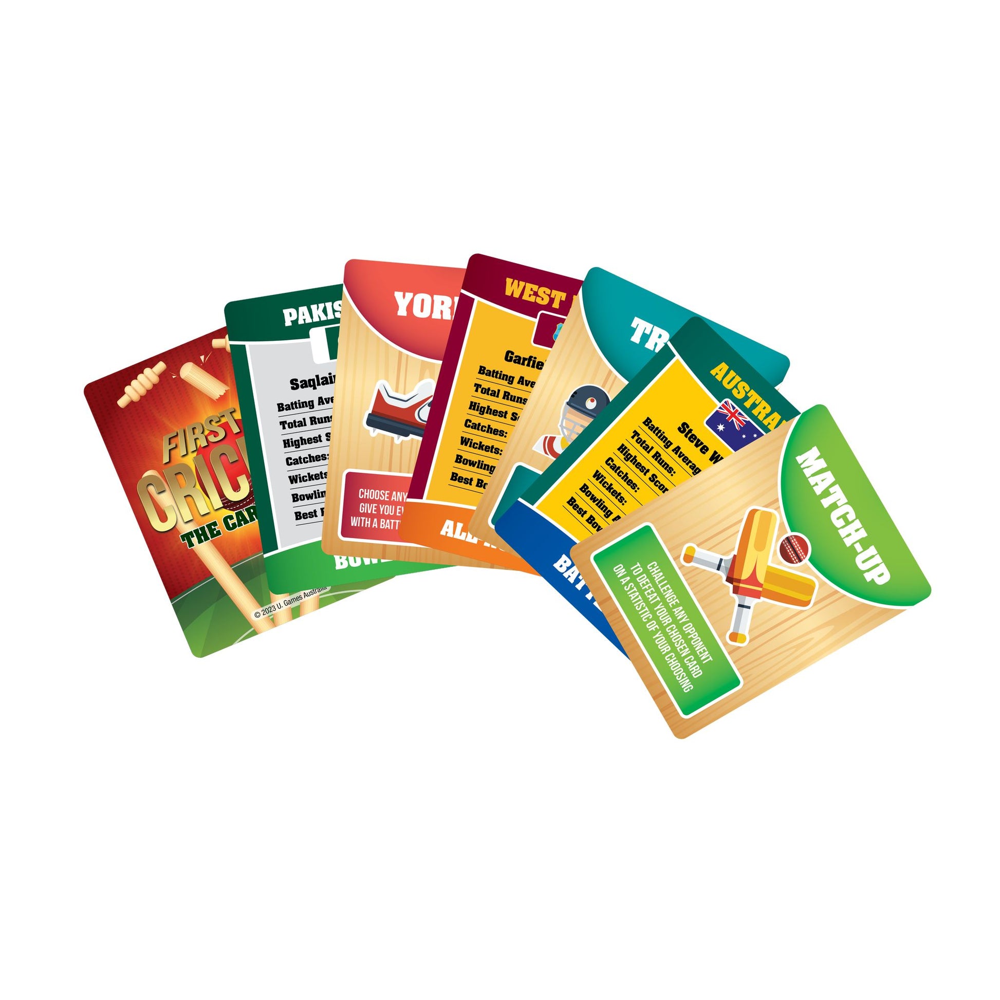 First XI Cricket is an exciting, cricket-themed card game for all ages. It includes 96 player cards featuring all the legends of the game from across 8 countries. The game uses real player test match statistics as well as an assortment of action cards, like the Yorker, Jaffa, Streaker, Hat-Trick, Double Hat-Trick, Block, Butterfingers, Follow-on, Match-up, Trade and Wild Card.