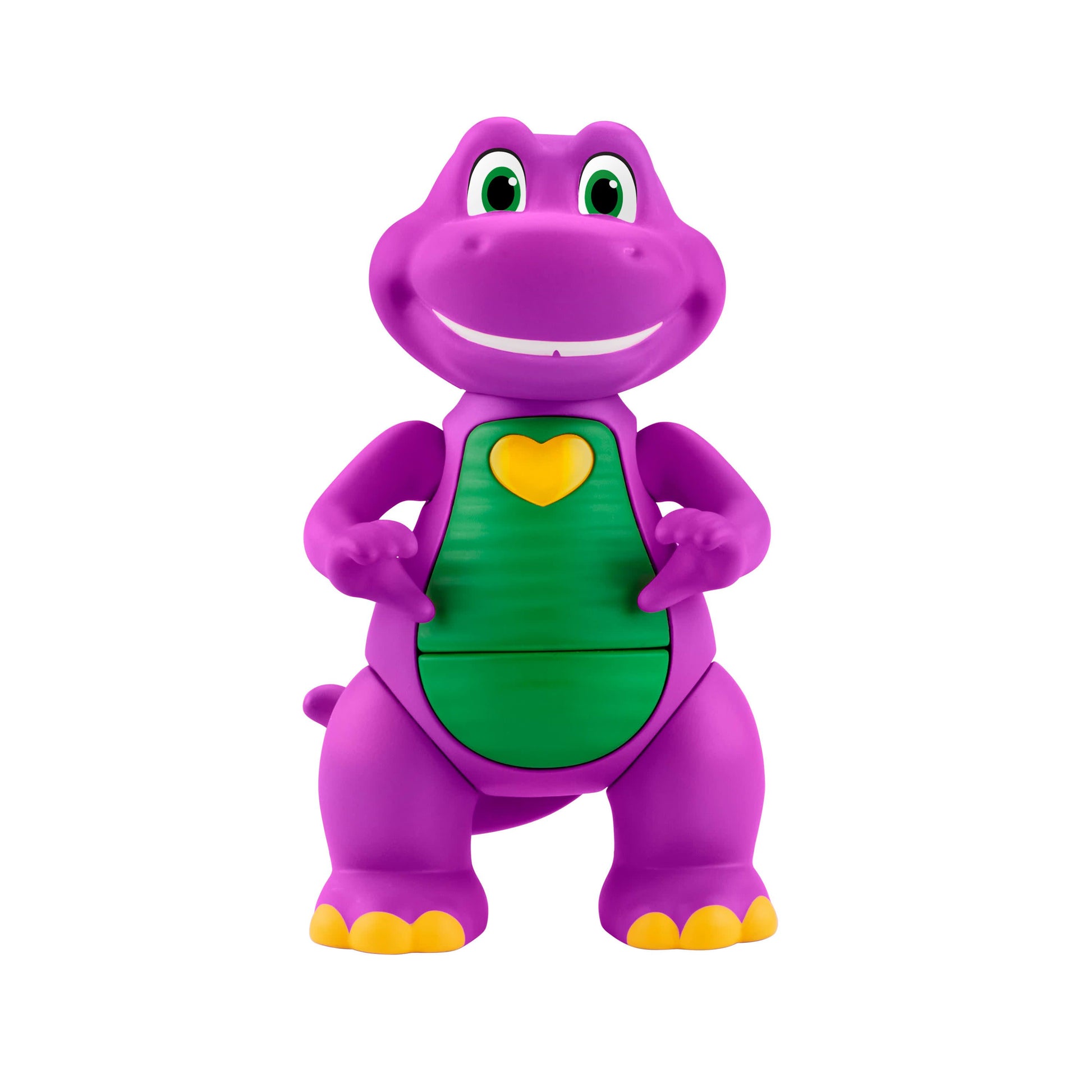 Inspired by the Barneys World series, this musical Barney toy recreates the characters cute heart hands pose with fun phrases.