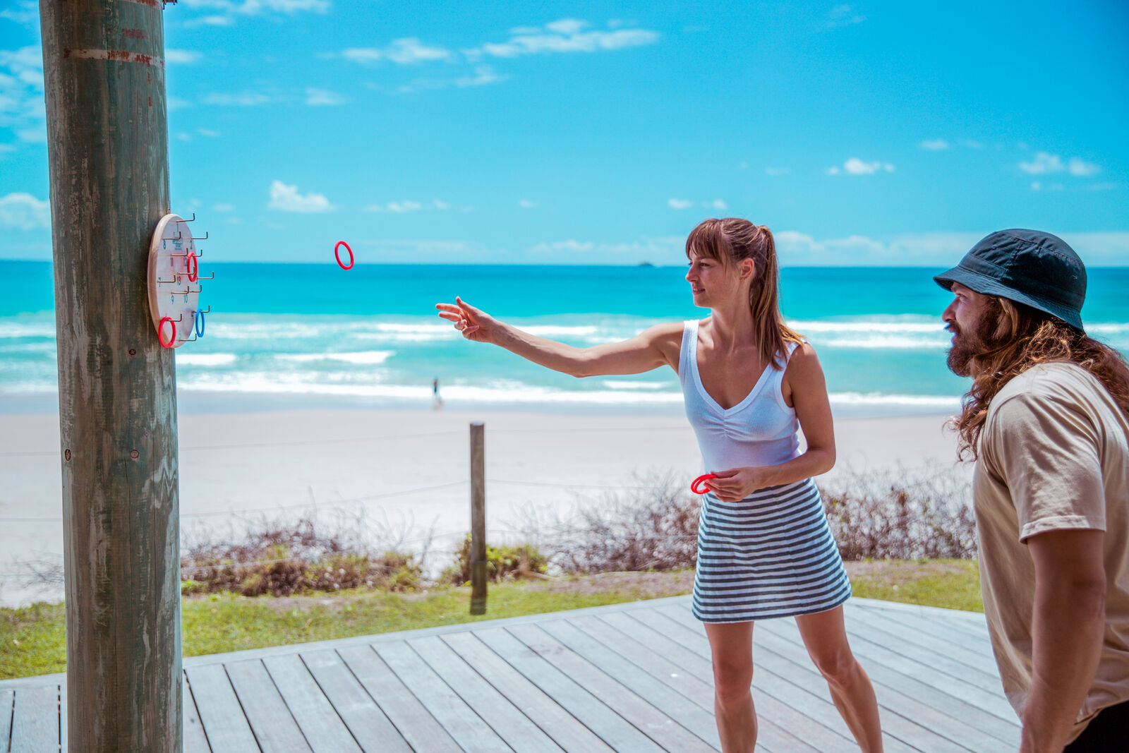 Includes: Numbered board made from Rubber Wood, metal hooks, 12 silicone throwing rings (6 x red, 6 x blue), 'How to play' leaflet