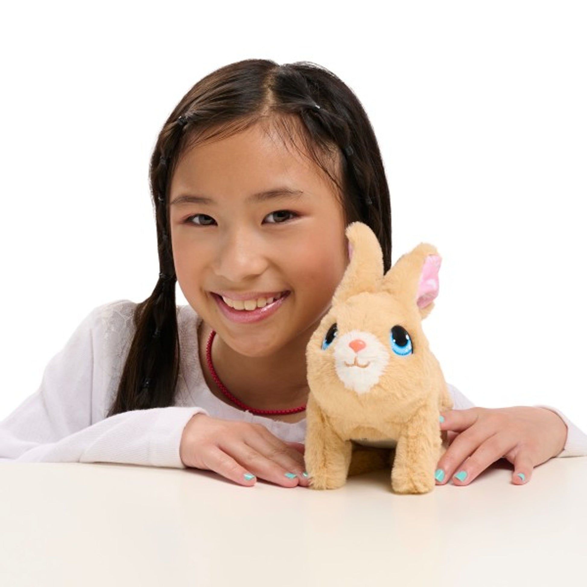 The furReal Hop Hop Bunny interactive plush toy makes pretend play pet care cute, soft, and lots of fun. This fluffy, brown and white toy bunny is ready for play and sweet cuddles. Turn the toy on to activate adorable movements and little hops. Watch her nose scrunch and her ears move as she makes cute squeaks. This 7.25-inch-tall toy bunny features super-soft plush from the top of her long ears to her little tail. Great for on-the-go fun, take her along for interactive play during recess, at sleepovers, and road trips. Hop Hop is sure to be a favorite in any kid’s collection of stuffed animals, plushies, and furReal pets (sold separately). Requires 2 x AA batteries (included). Great for birthdays and everyday celebrations for animal lovers and kids ages 4 years and up.