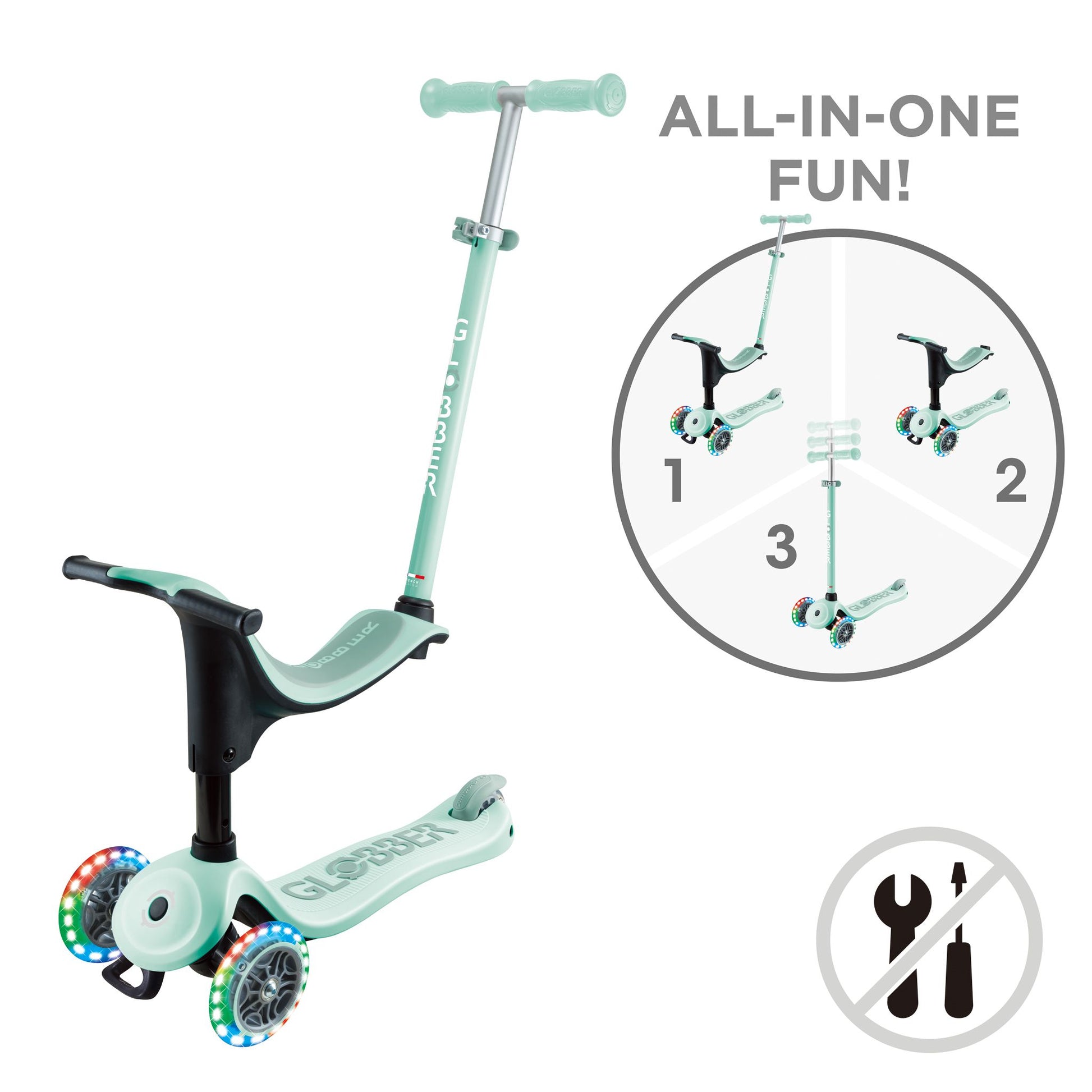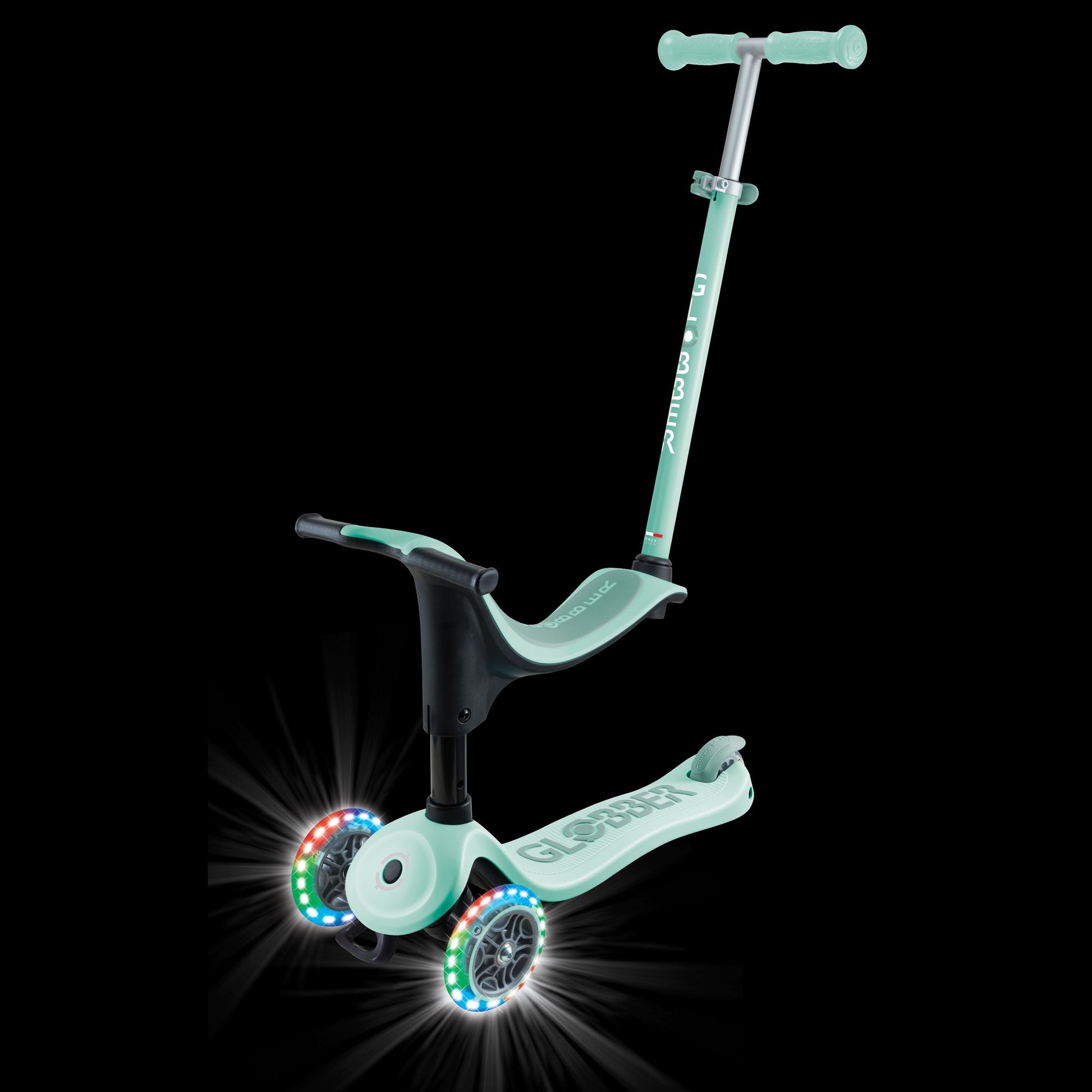Globber Go Up Sporty Lights Scooter/Ride On With Stabilizer - Mint