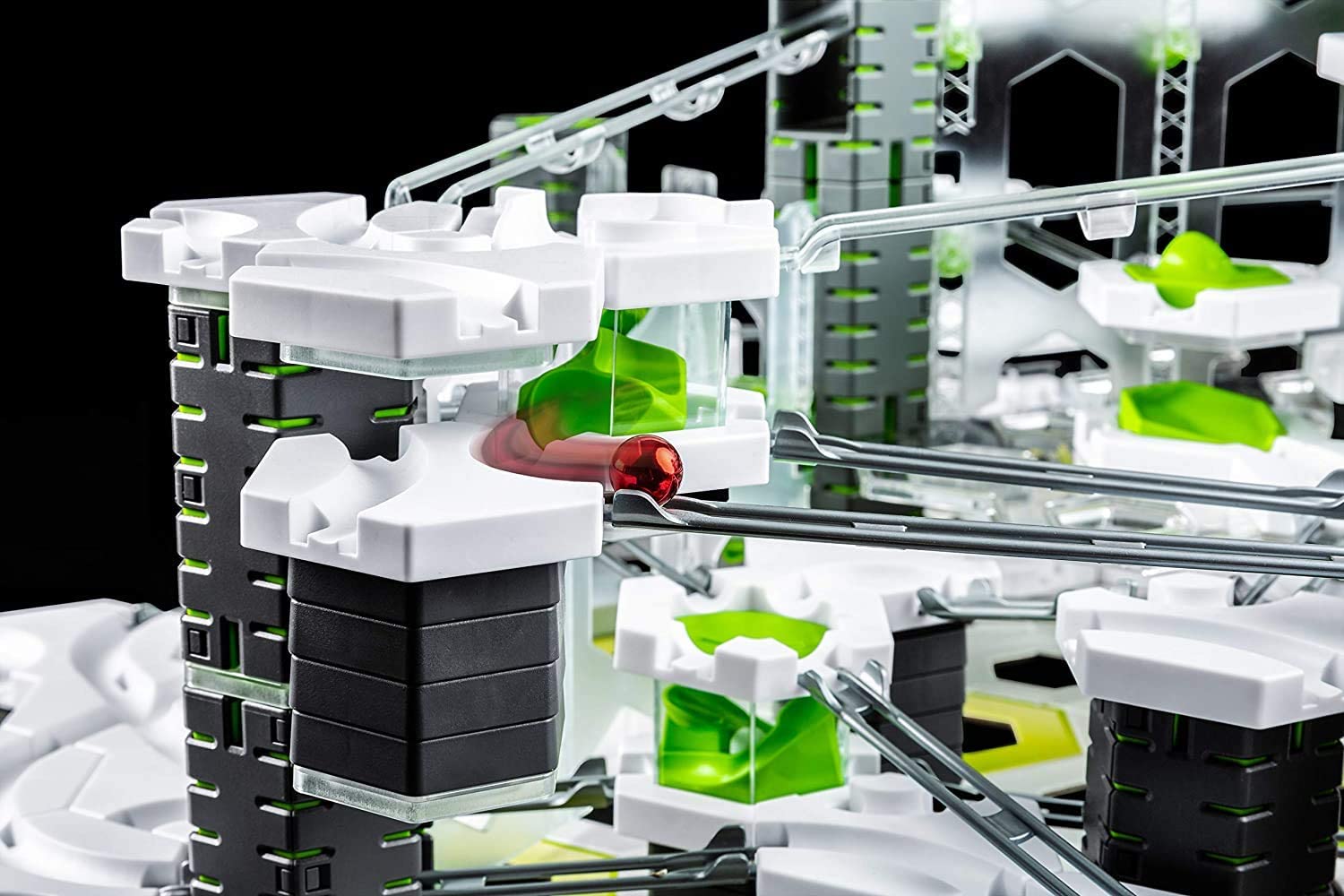 This STEM system [Science, Technology, Engineering and Maths] is an ideal one to teach kids about gravity, magnetism, kinetic energy and fun. Hit a snag? Freestyle with your own track design or use the tasks and blueprints included to help you to get started in the world of GraviTrax! Are the gravity spheres stopping or flying off before reaching the end target? Time for some problem solving. Rebuild and try something different! The GraviTrax track system can be extended indefinitely with extra track packs and add-on’s – each sold separately. Suitable for ages 8 years and up.