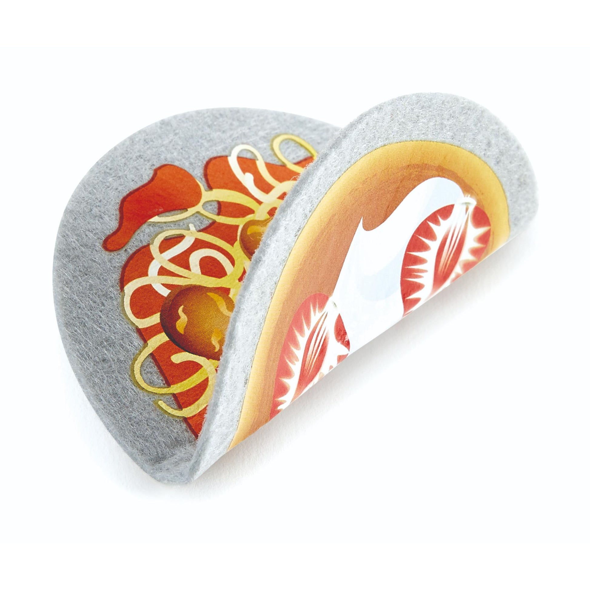 Toy set includes six recipe options with three double-sided felt discs, your little chef can prepare meals such as steak and vegetables, fried salmon, spaghetti, bacon and eggs, curried chicken legs and pancakes. This cooking set is sized perfectly for small hands. With the perfect ingredients and hours of imaginative fun, this kids playset also promotes the development of creative thinking and motor skills.