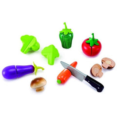 There's nothing healthier than fresh vegetables! Trim the stems and then use the play knife to cut the green pepper, tomato and more. The vegetables are held together with self-stick tabs and come apart for extra realism.