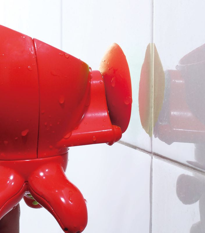 Turn the wall of your bath into ocean surf with this clever suction cup set. Running water makes the sea animals dance and spin! Attach to bath wall using the suction cups. Use the pitcher to pour water onto the animals and water slides.
