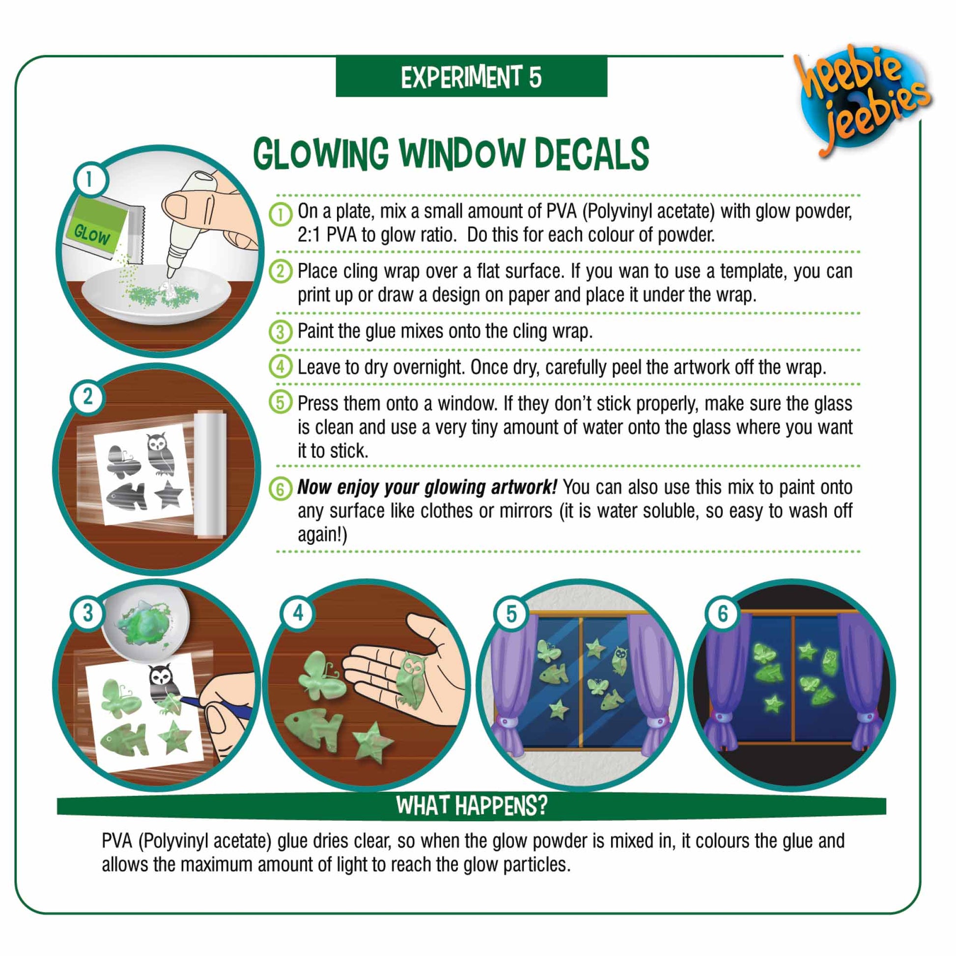 Learn all about photoluminescence and why things glow with this clever pop-up lab design with detailed instructions and explanations makes it fun too. Kids can learn to make their own magic snow that glows and can grow plants in, create glow in the dark chalk, and glowing glue to make and draw window decals.