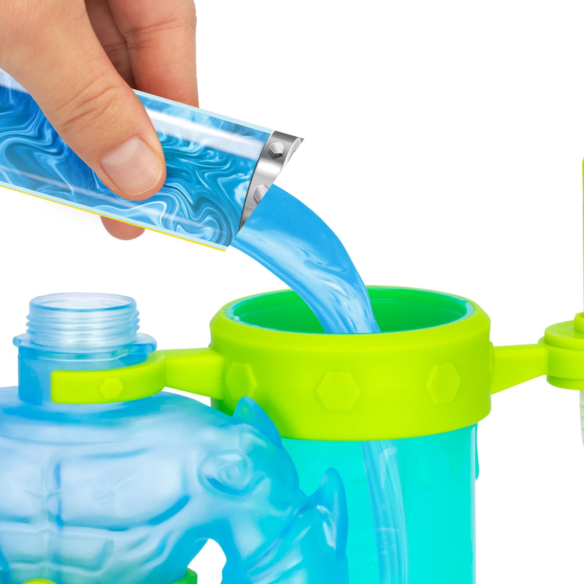 Add water, pump the figure's body full of goo, and watch as Thrash is brought to life! Remove him from the hero creator, and he's ready for stretchy, squishy action! Thrash's body can be stretched up to three times its size, so make sure to unleash a STRETCHY attack! Endless adventure awaits!