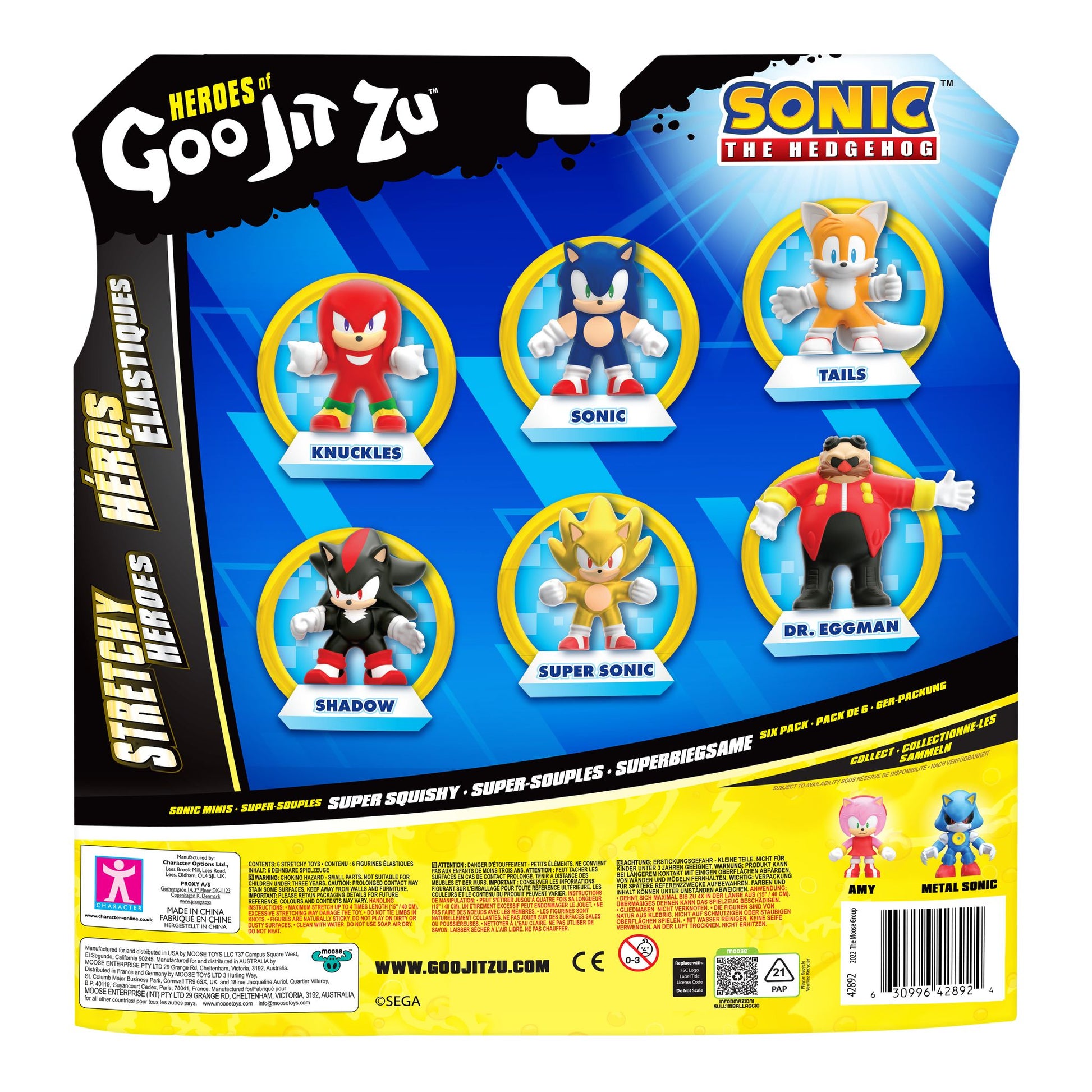 Many of your kid's favourite Sonic the Hedgehog characters are available in this Mini Goo Jit Zu range including Sonic, Metal Sonic, Knuckles, Tails, Shadow the Hedgehog the Hedgehog, and Amy!
