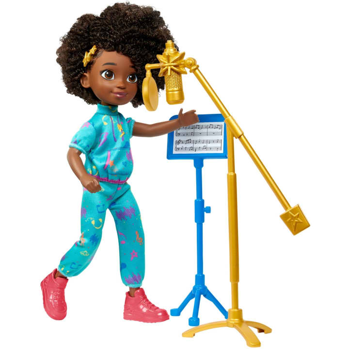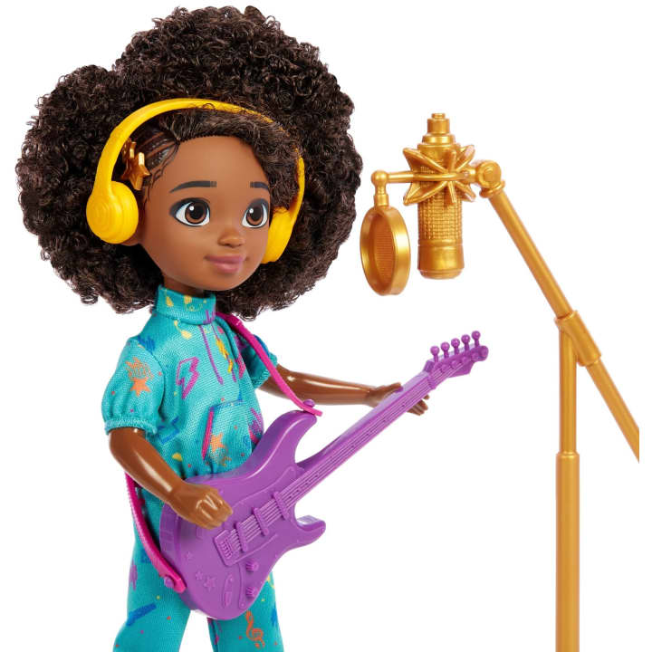 With accessories like a guitar, microphone, headphones, record, and more -- Karma doll (8.7-in) has everything she needs to make her next hit song!