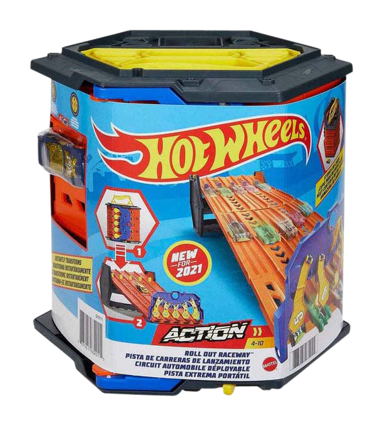 When it's compressed, the Hot Wheels Roll Out Raceway serves as a convenient and portable storage container that can hold up to 80 die-cast cars and five track pieces. Unsnap it and reveal a 5-lane racetrack playset for multi-car competition. Up to five cars can compete at once, and with the fair starter mechanism, no one gets an unfair advantage.