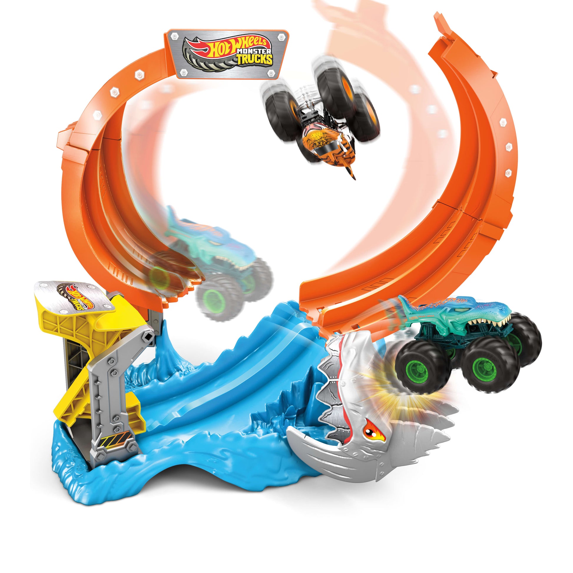 Hot Wheels Monster Trucks Corkscrew Shark Smash Track Set