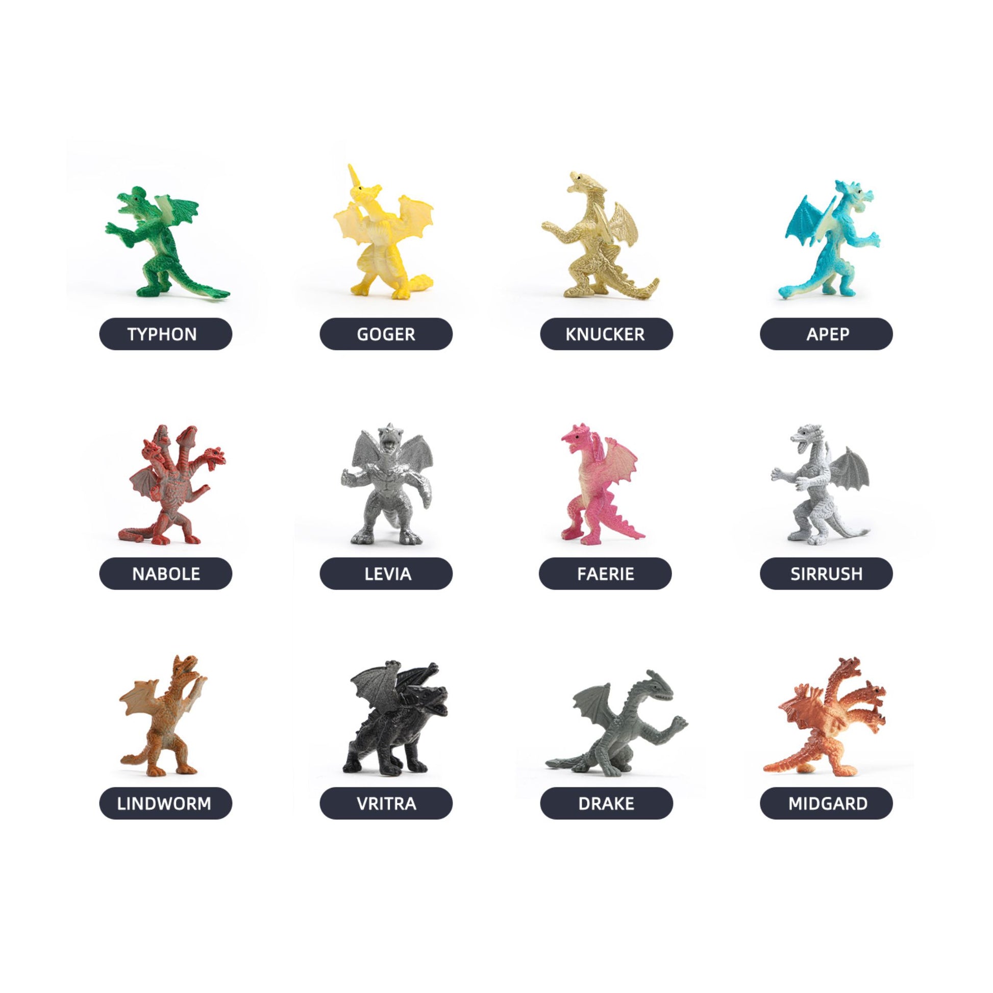 Dig and explore the mysterious dragon world with your very own golden dragon egg! Uncover twelve mythical dragons in each egg. Kit includes a golden dragon egg, digging tools, an instruction sheet, 12 dragon information cards and fun, mythical dragons to discover and play with.
