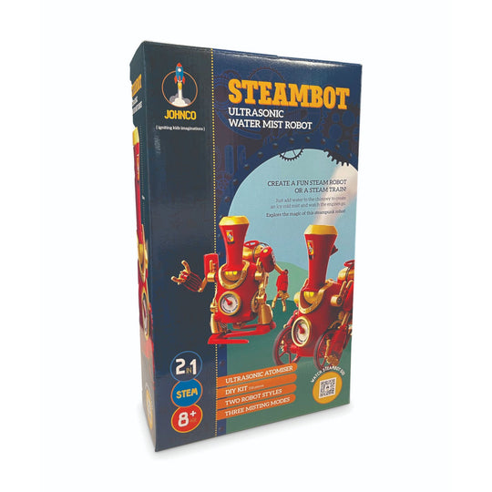 STEAMBOT delivers clear educational insights while kids have endless fun with this hands-on DIY experience. Explore the magic of this Steampunk robot!