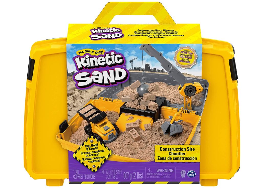 Dig, build and crush with the Kinetic Sand Construction Site! This construction-themed folding sandbox playset has everything you need to create your own construction site: 2lbs of brown Kinetic Sand, a dump truck, and a working crane with wrecking ball and bucket attachments! Kinetic Sand is the original magical, moldable and mesmerizing sand. It flows through your hands and never dries out, so you can play again and again.