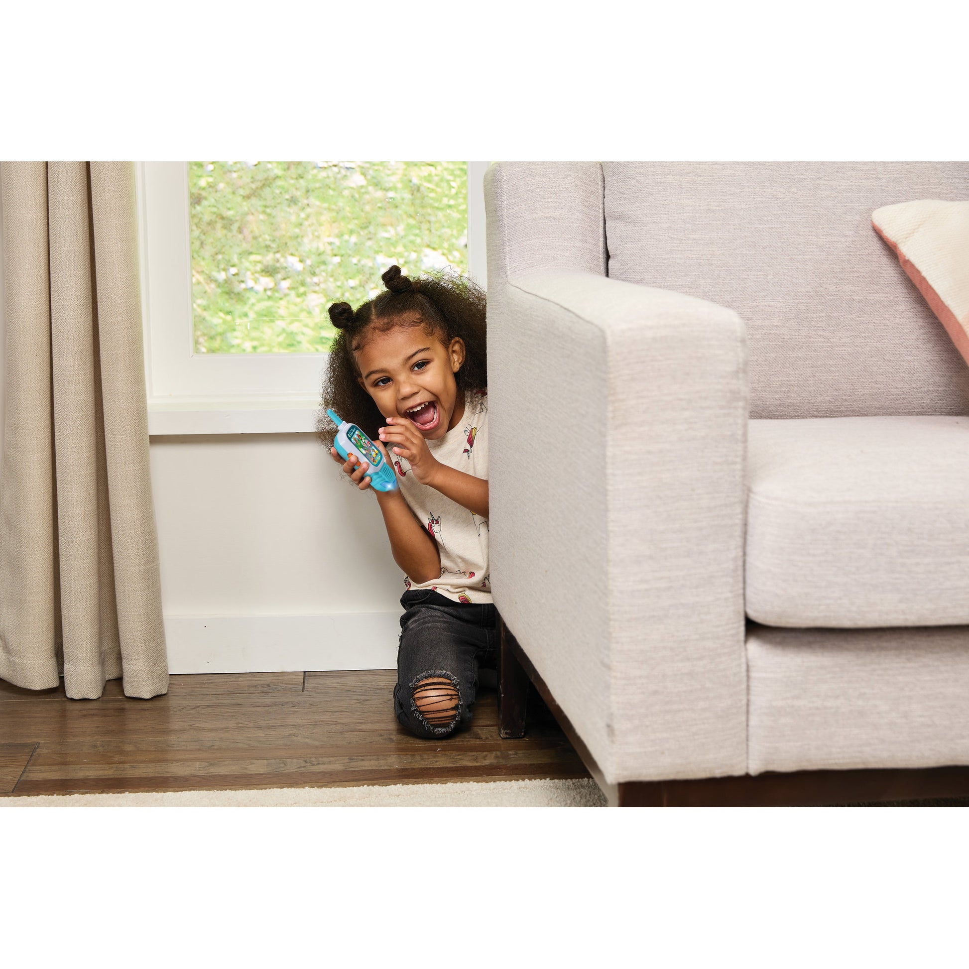Press and hold the side button to talk, while sound-reactive lights make play even more engaging. With a range of up to 305m, kids can explore, chat and role-play alone or with friends, building communication skills and confidence.