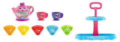 Leapfrog Musical teapot, cake stand, 5 pieces of cake and two cups provide the perefect party to explore pretend play. Music and tea party modes provide a fun range of activities that introduce colours, shapes, numbers and sharing. "Tea"lights up inside the pot, tilts when poured and disappears when empty. Press the heart button to brew more tea. Lights up in 5 different colours. Lift the lids to change tea flavours and learn each colour. 9 songs, 10 sound effects and 70+ phrases allow for a rich musical and imaginative experience. 12m +