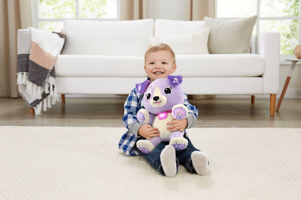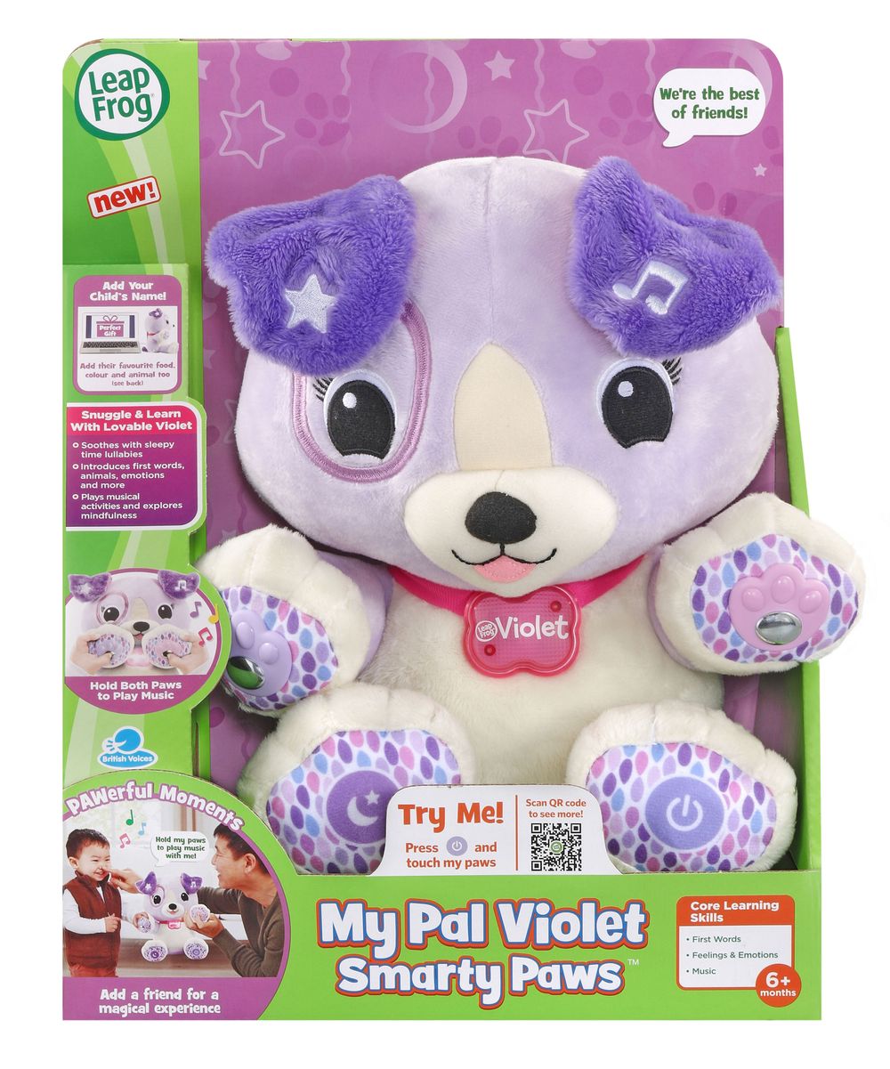 Cute, cuddly and customisable, My Pal Violet Smarty Paws makes the perfect friend for your little one. Touch-sensitive front paws feature sensors that begin silly reactions, music, games, and mindfulness exercises when little ones hold both paws and stops when they let go to introduce cause and effect. Violet’s paws can help create magical moments for kids and caregivers when they hold hands with each other and the toy adding an interactive experience everyone will love. Personalize the play and learning across more than 15 activities by programming Violet with the child’s name, favourite food, colour, and animal. Violet will introduce your child to first words, counting, and feelings and emotions. She’ll even teach your child how to spell their own name! Violet’s ears and back paws also have little surprises. Press Violet’s ears to play 40+ songs, lullabies, and melodies, or to explore games and activities. Her right back paw button activates night-time mode that plays soft lullabies for 5, 10 or 15 minutes to help soothe little ones to sleep.