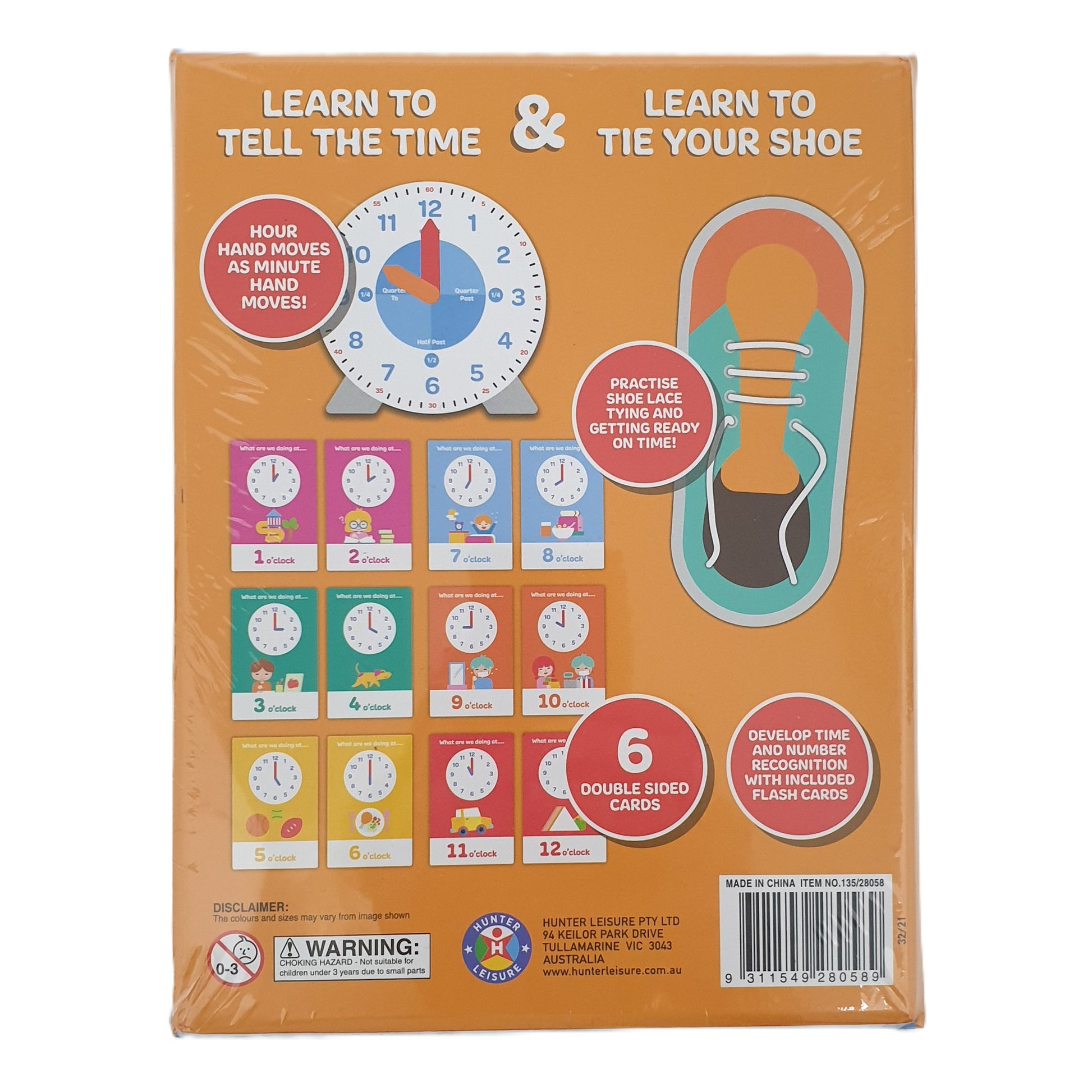 Kids can learn to tell the time with a moving hour and minute hand, practise number recognition with 6 double-sided flash cards, and build confidence by learning to tie shoelaces. It’s a hands-on way to develop fine motor skills, coordination, and independence while having fun.