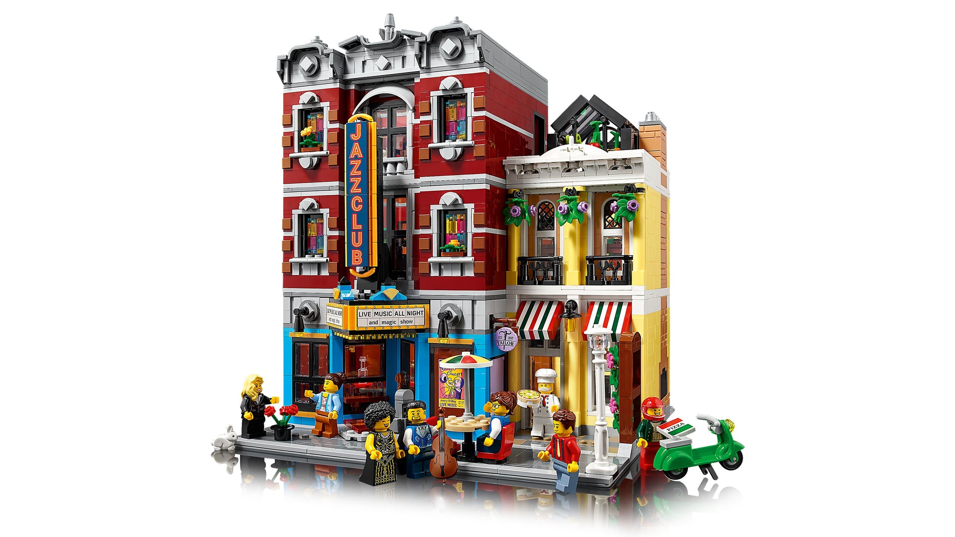A club for cool cats – This building set is packed with detailed sections, including a pizzeria, a tailor’s workshop and the jazz band’s dressing room