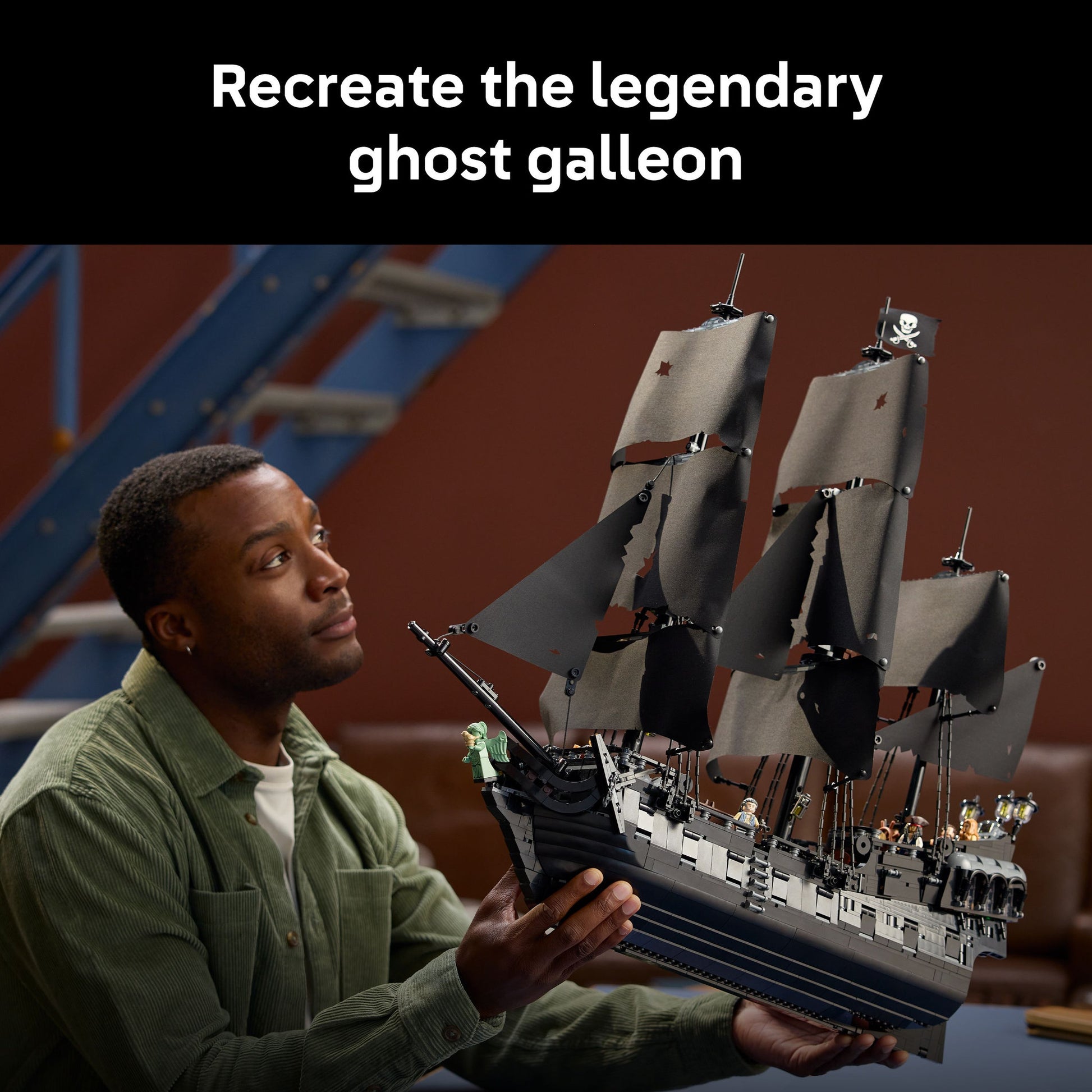 Set course for a creative voyage with Captain Jack Sparrow’s pirate ship. Craft a detailed replica of the legendary ghost galleon with soaring masts, torn black sails and rows of port and starboard cannons that deploy at the turn of a dial. Enjoy an immersive project with this LEGO® Icons building set for fans of Disney’s Pirates of the Caribbean film series. Includes 8 film character minifigures.