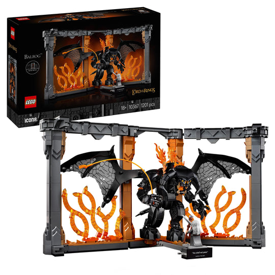 What’s in the box – Includes all you need to build the LEGO® Icons The Lord of the Rings: Balrog™ Book Nook, a Balrog figure with a fiery whip and a Gandalf the Grey™ minifigure with a staff and sword