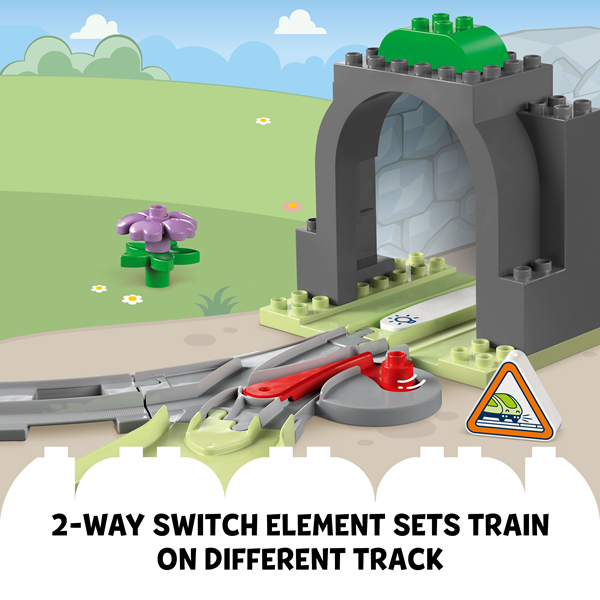 Train track toy set – Toddlers aged 2+ extend their LEGO® DUPLO® railway adventures and learn developmental skills with the Train Tunnel and Tracks Expansion Set.