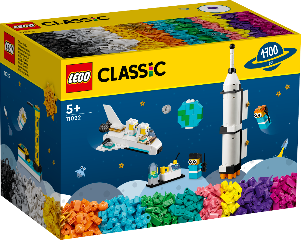 • Space-themed creative building set for kids – Children aged 5 and up can join friends and family members for hours of out-of-this-world building fun with the LEGO® Classic Space Mission (11022) set