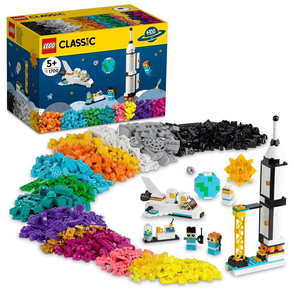 • Includes 1,701 LEGO® pieces and 10 mini build ideas – Kids can build a launch tower, mission control center, rocket, space shuttle, sun, Earth, moon, astronaut, 2 technicians and whatever they imagine