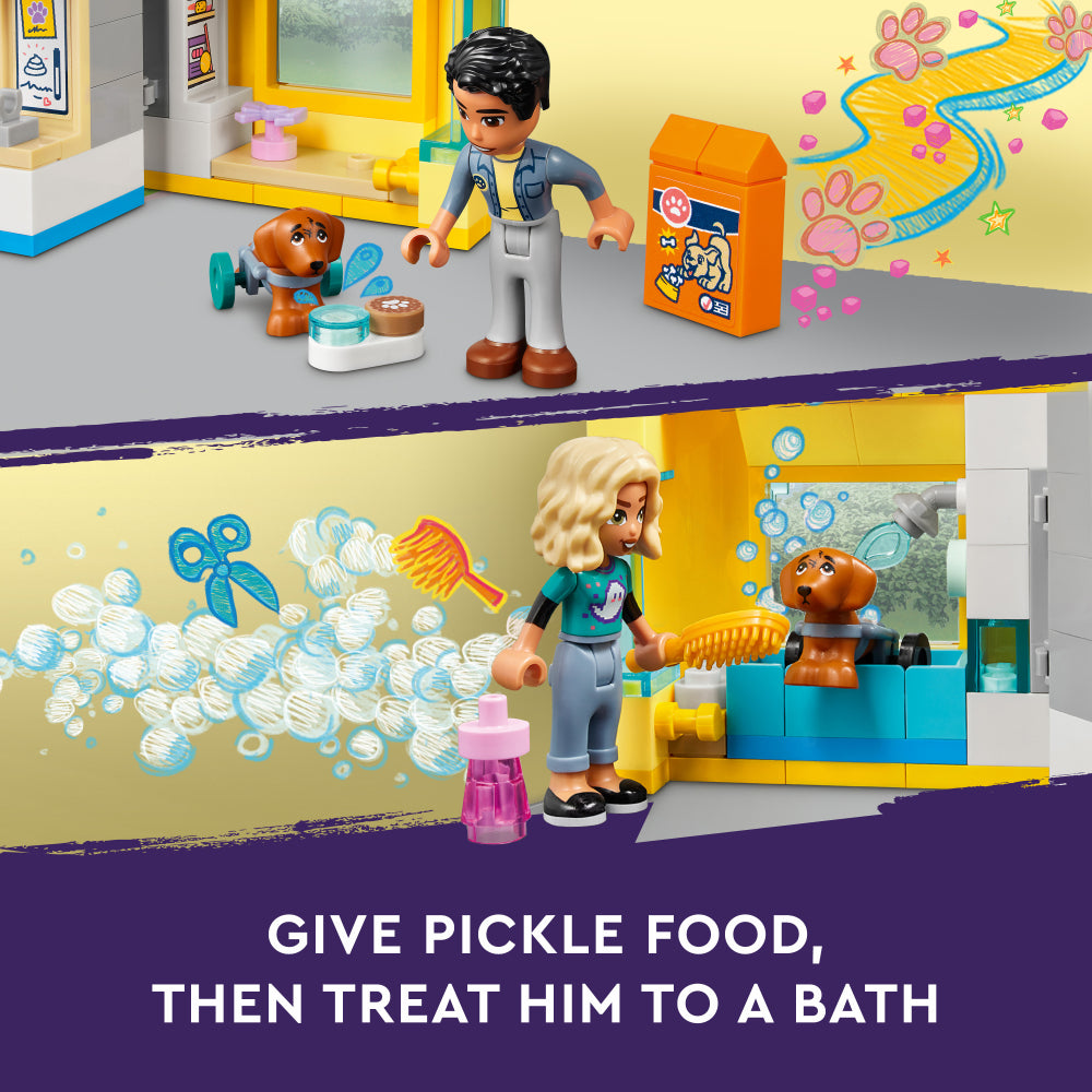 Pet care accessories – Accessories include a dog bath, work bench, brush, soap, trash can, poop, water and food, plus wheels to help Pickle walk