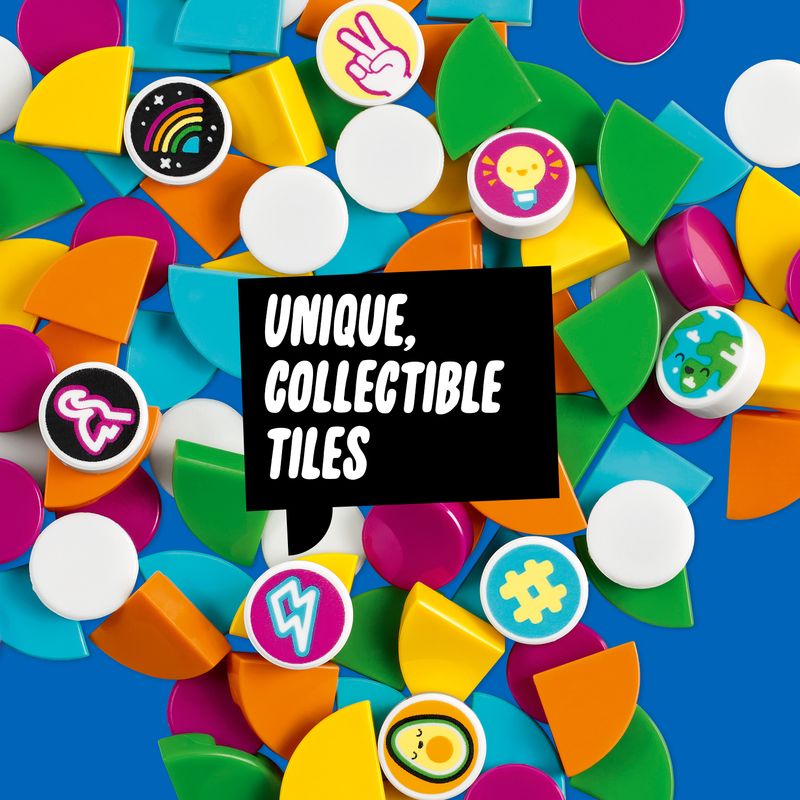 • The tiles are great for decorating bracelets or room decor items in unique ways. Kids can use the tiles with other DOTS sets, or any other LEGO® set, to customize them the way they like.