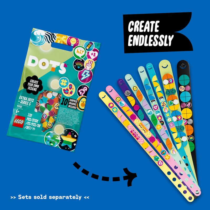 • A DIY arts-and-crafts fan will love opening this Extra DOTS – Series 5 (41932) bag. The fresh colors and special decorated tiles will be a fun anytime or extra gift for boys and girls aged 6 and up.